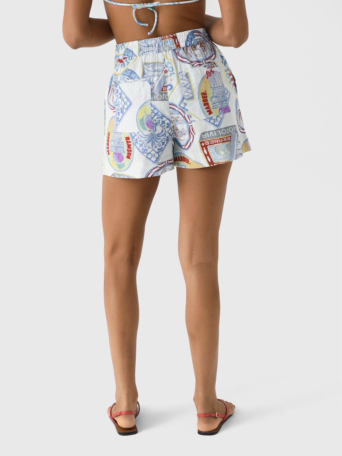 A best-selling short made from lightweight organic cotton and linen with a custom print and everyday warm-weather design.