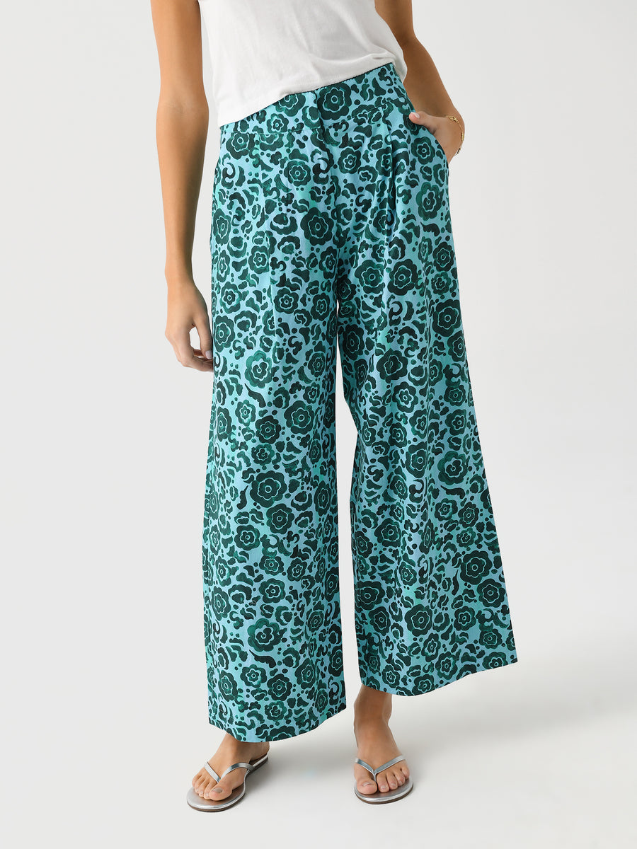 A wide-leg pant made from lightweight cotton with a daffodil-inspired print.