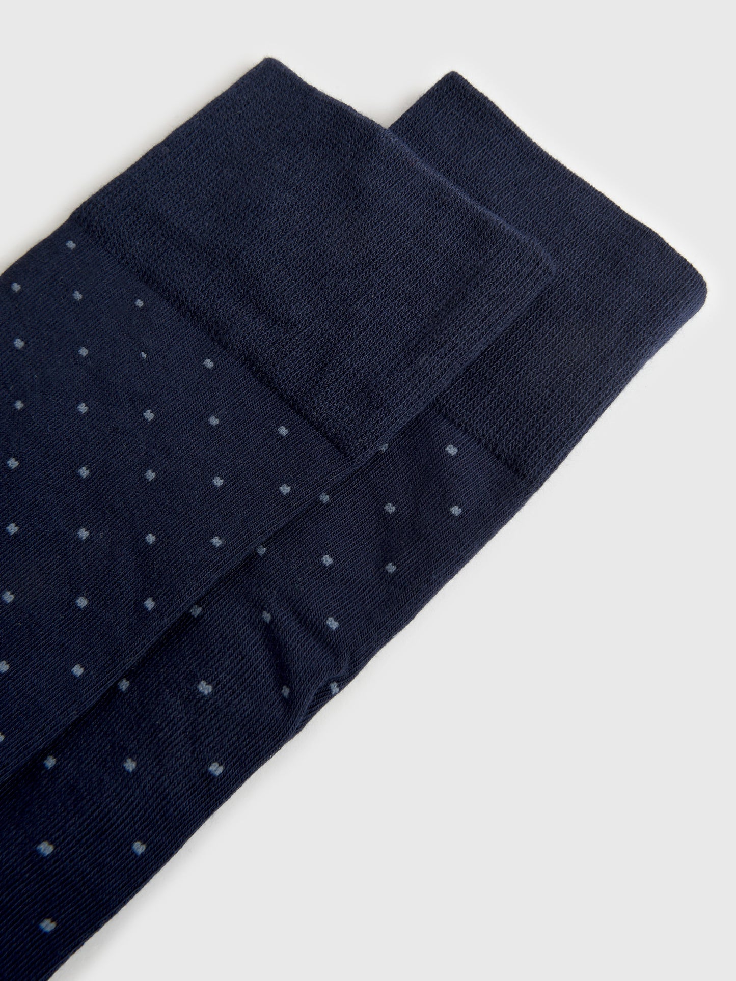 A pair of premium dress socks made from a soft Pima cotton blend with a micro dot print.