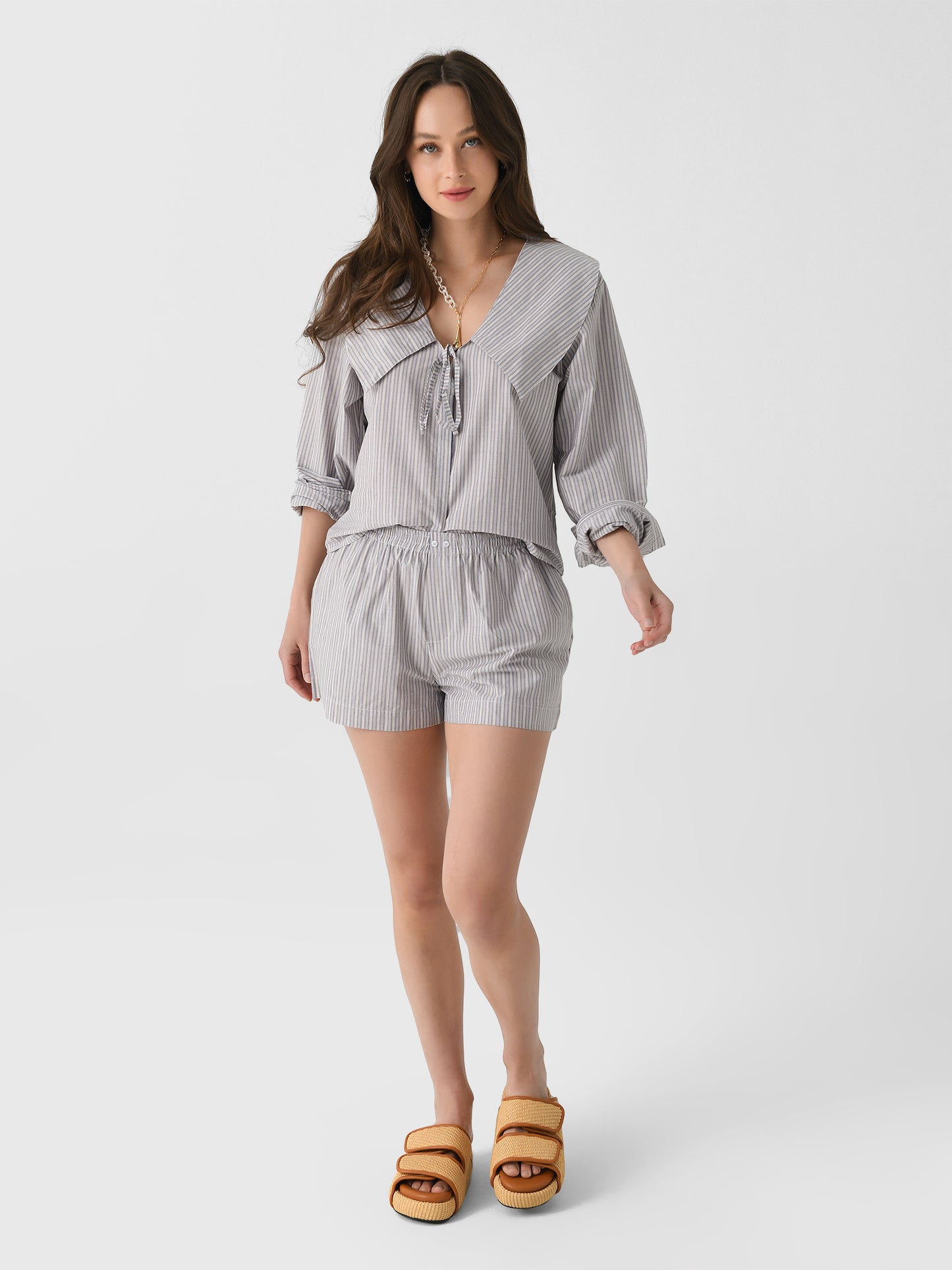 This effortless boxer is made from organic cotton and features a gathered elastic waistband that ensures a comfortable fit, accented by a double-button detail.