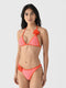 This triangle bikini top is made from soft crochet fabric and features adjustable ties and a removable crochet flower detail.