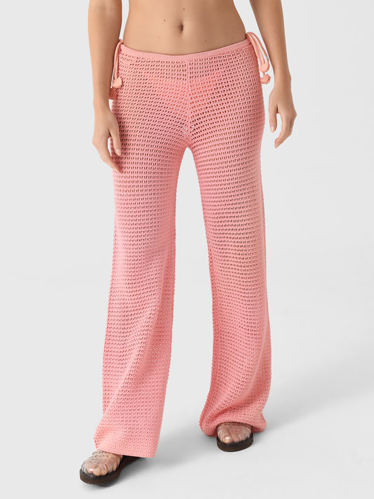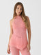 A sleeveless knit top with a high mock neckline and a long fringe hem.