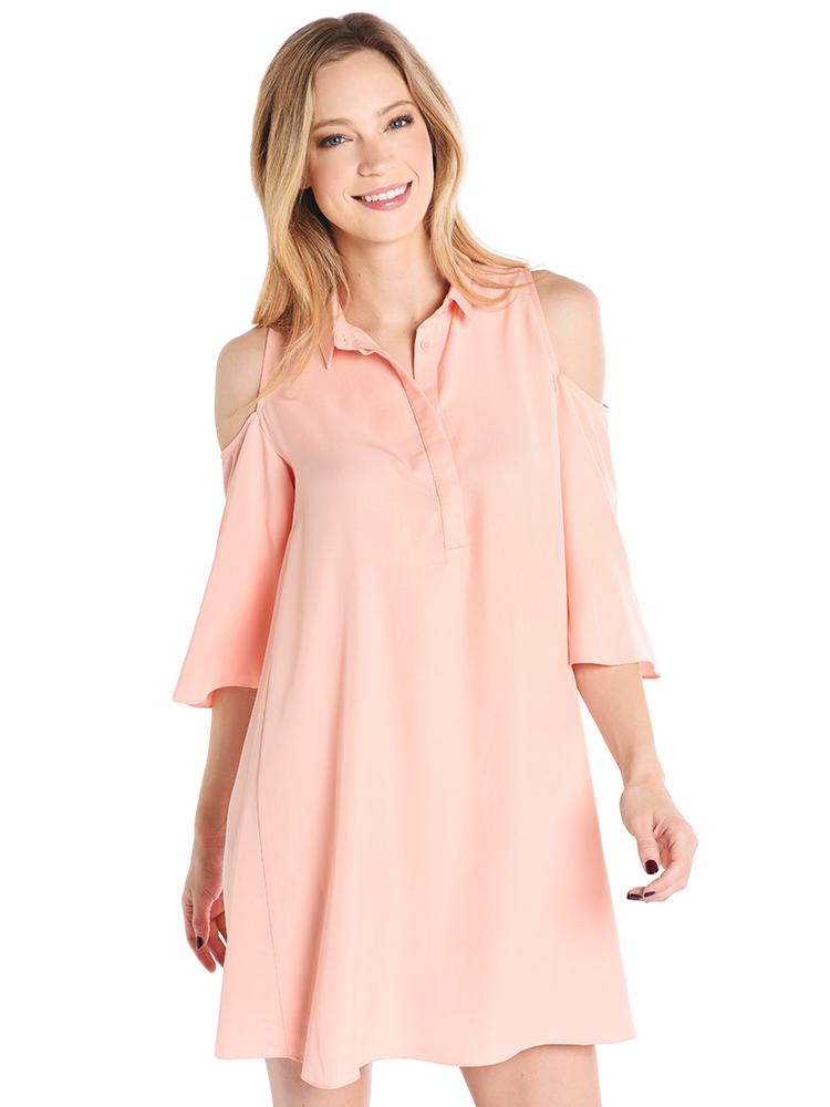 Brighten up your casual look with the DO+BE Cold Shoulder Dress.