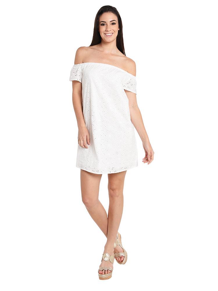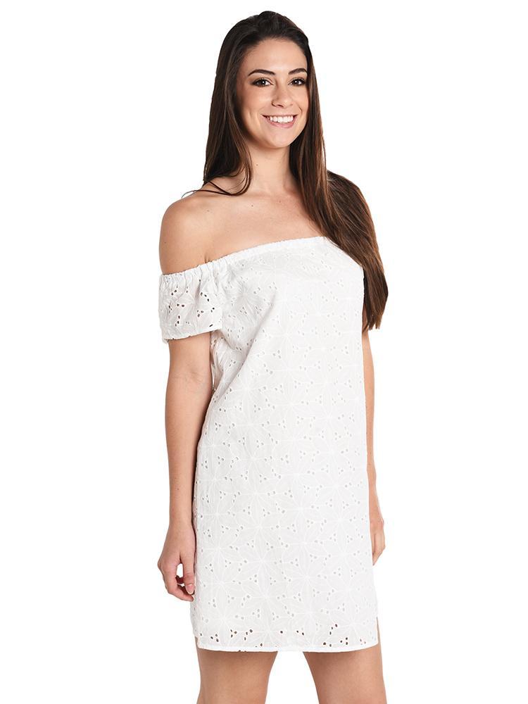 The Do+BE Lace Off the Shoulder Dress is a perfect white summer look.