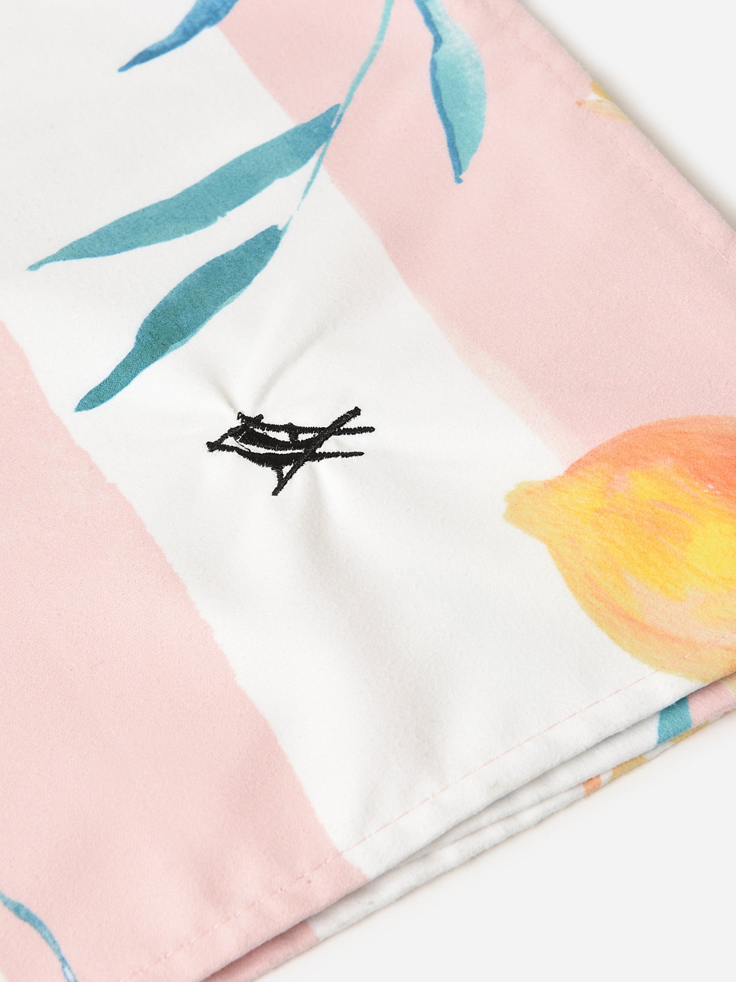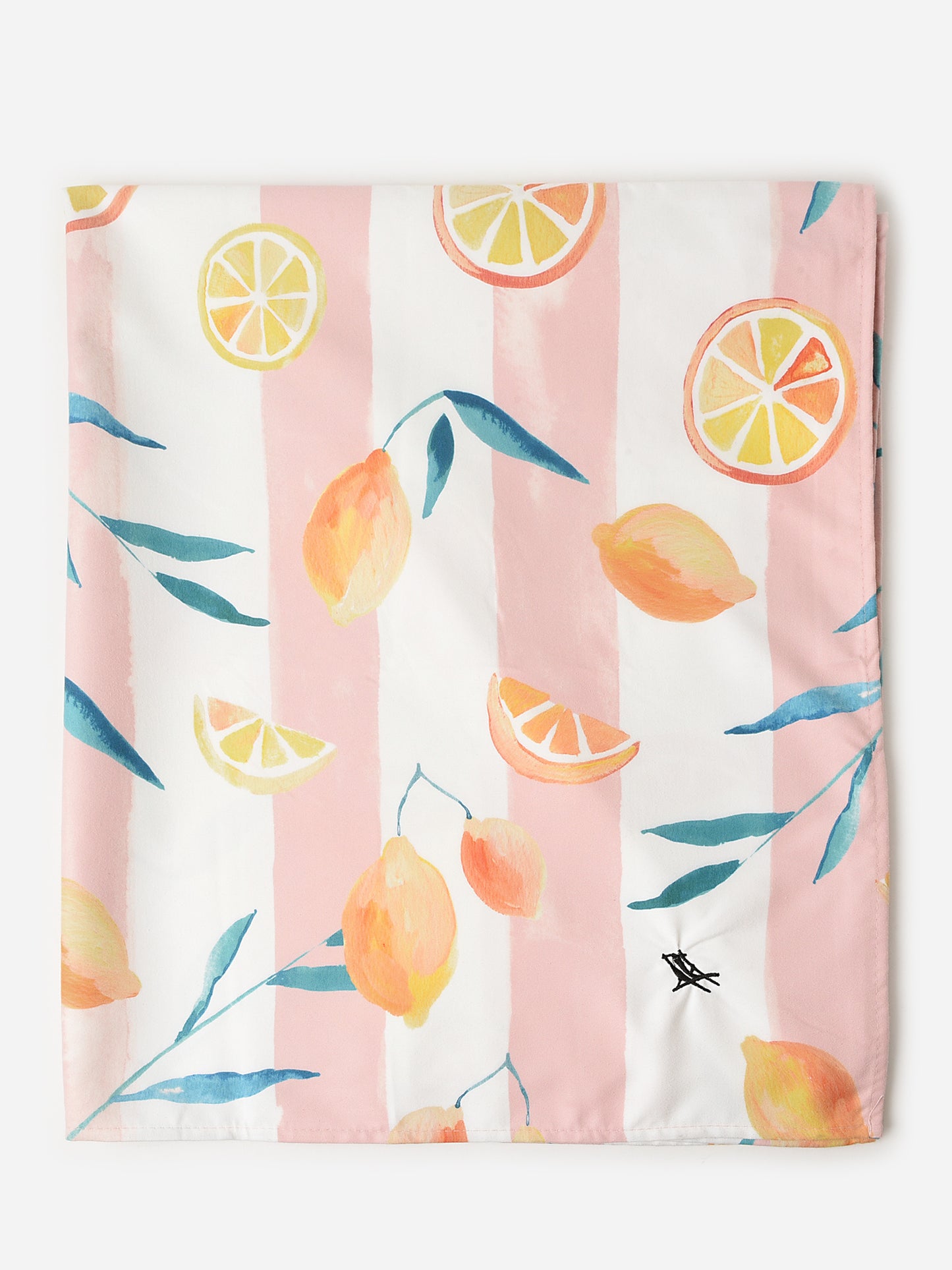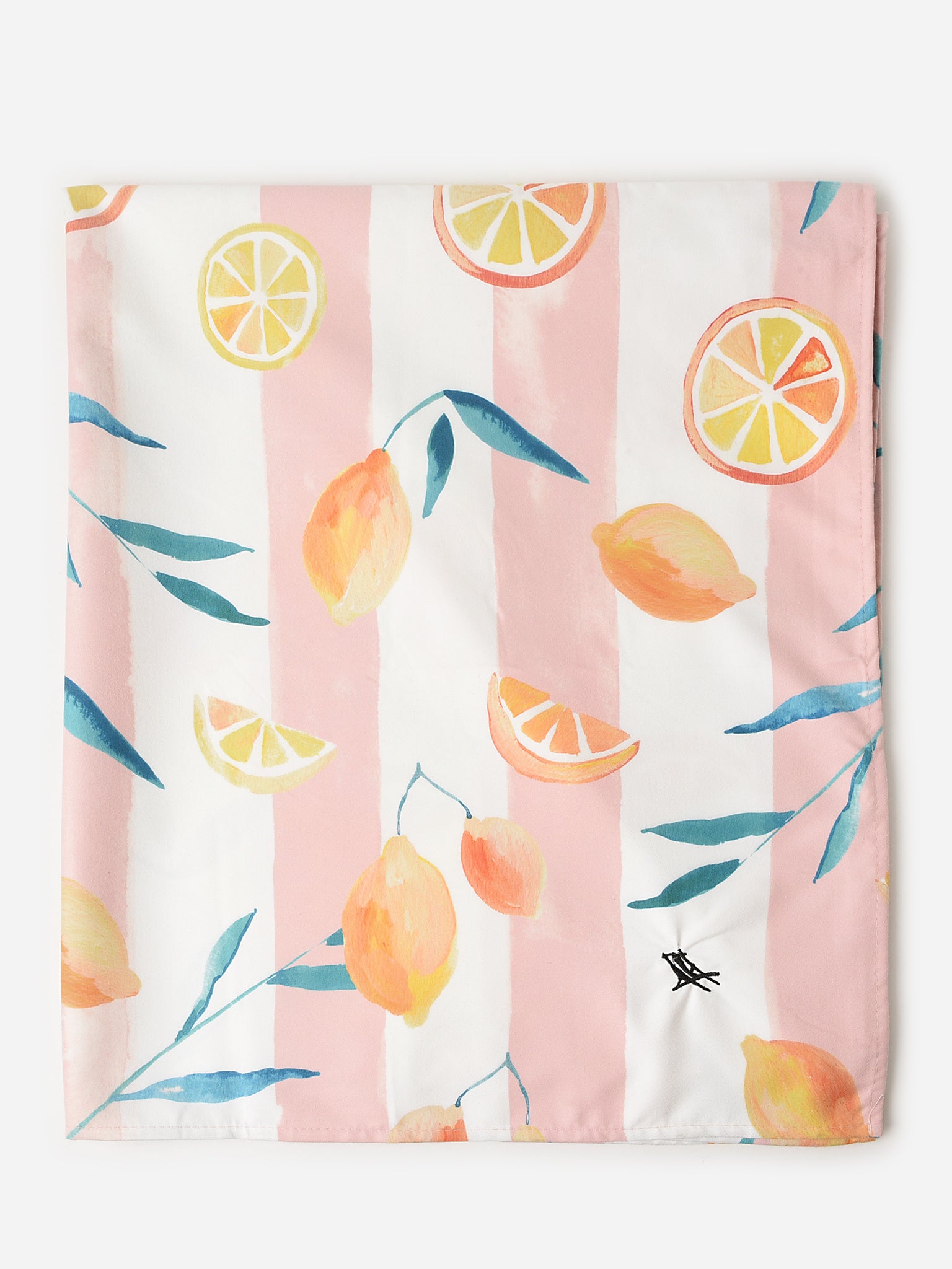 A sustainable-made, quick-drying beach towel with an adorable lemon print and sand-repellent design.