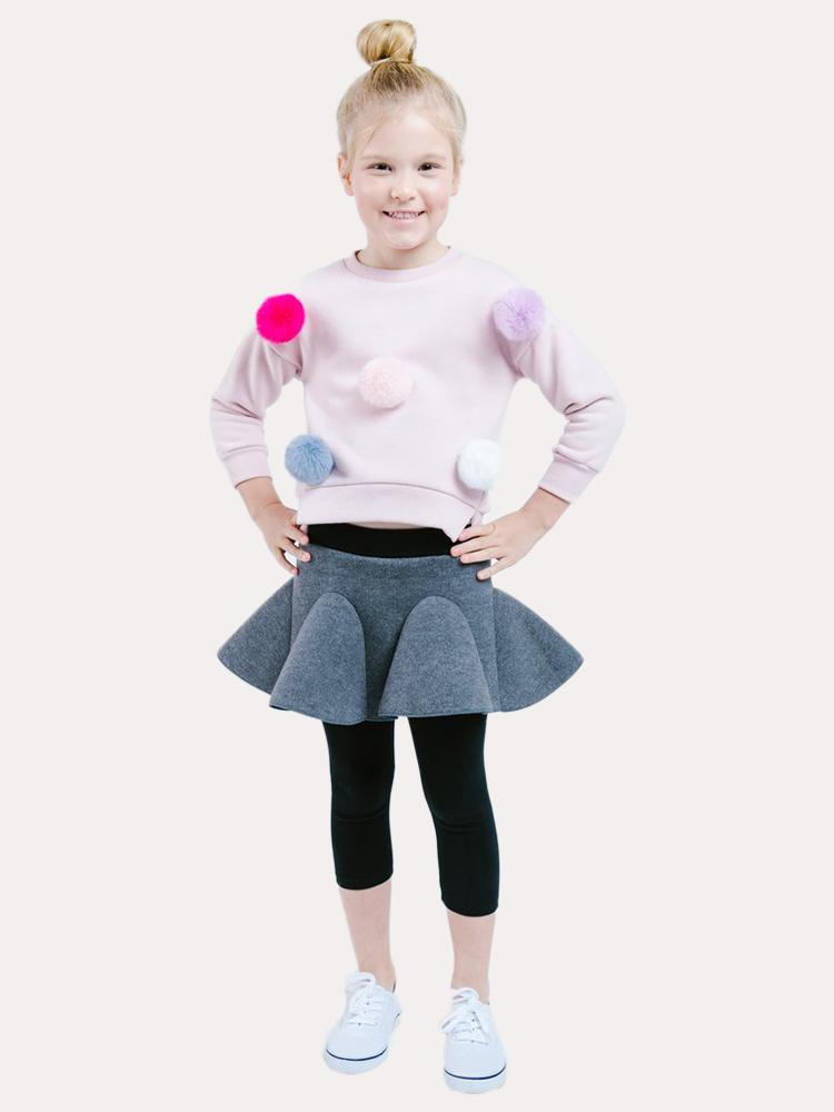 She'll be ready for school pic in the stylish Doe A Dear Long Sleeve Crewneck Sweater with Large Fuz Balls.