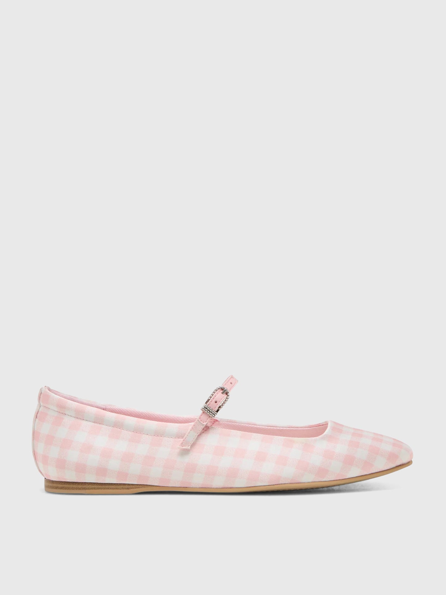 The Reyes X Byrdie Golf ballet flat in a delightful pink and white gingham perfectly embodies this exciting footwear collaboration. Where Dolce Vita's iconic ballet flat meets Byrdie's signature feminine print, you get a fun yet timeless style ready for any outing.
