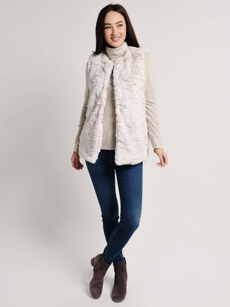 - Styled with Citizens jeans Style # 1742-850 and Tasha shoes Style # G0103F2001. Model is wearing size small vest and size 26 jean.