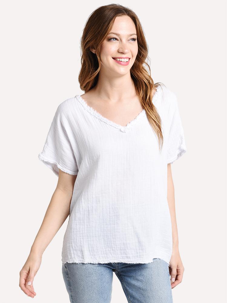 The Dylan Gauze V Neck Top is a Tee you will live in all summer.