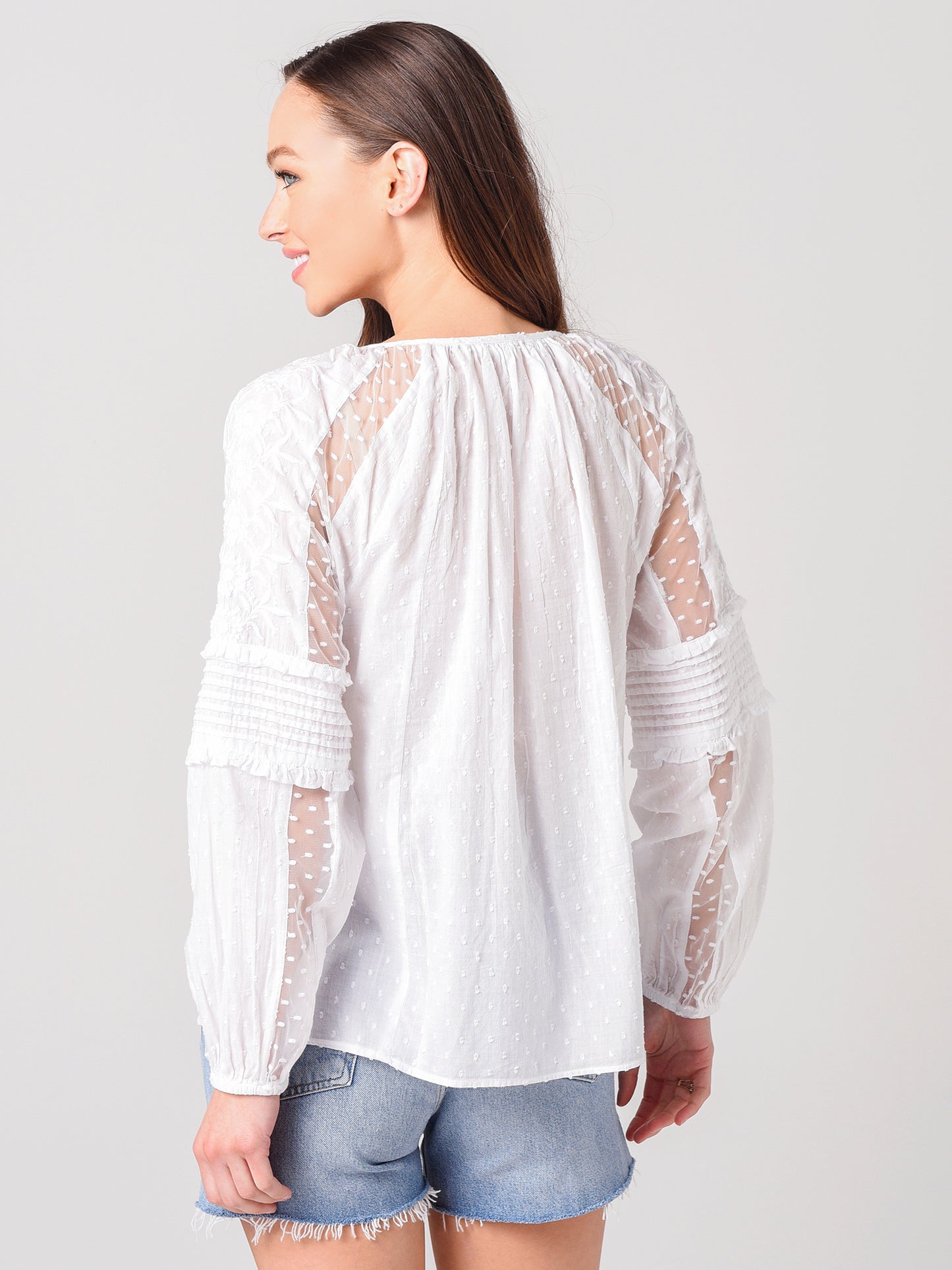 The Dylan Pretty Swiss Dot & Lace Top pairs perfect with your favorite denim.