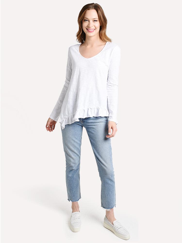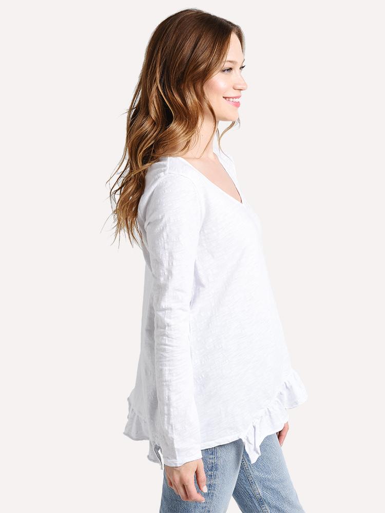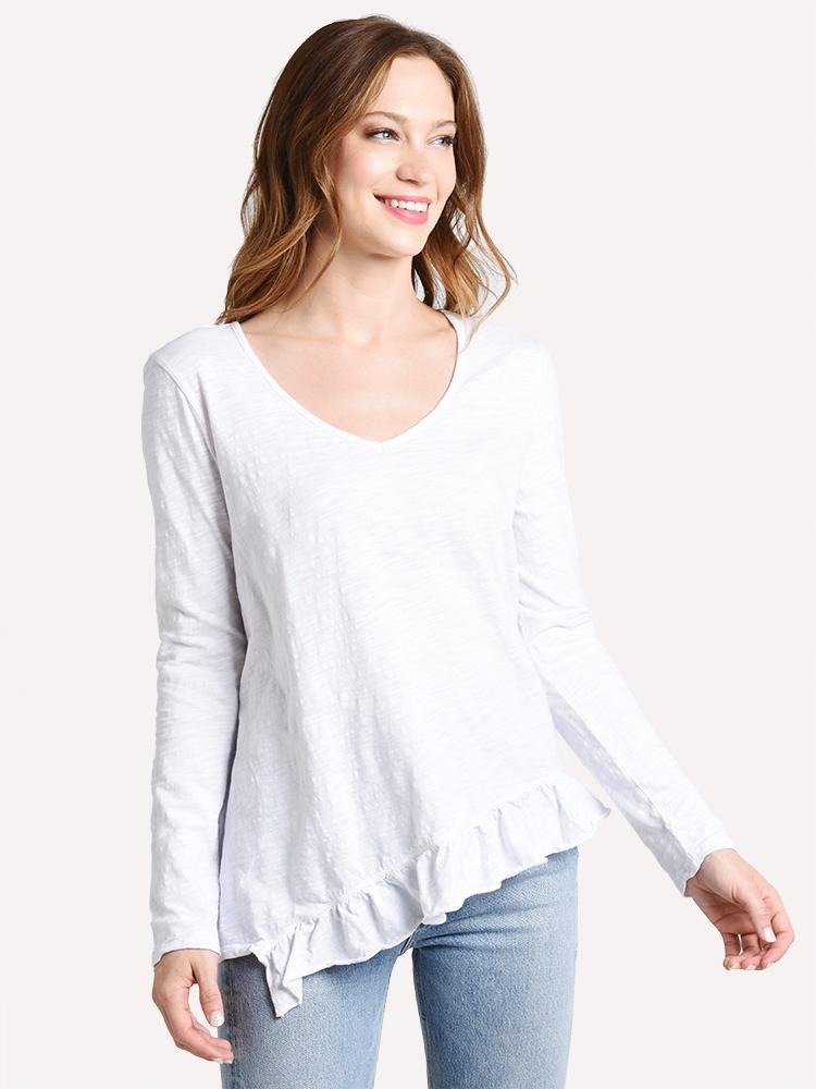 Add a little Spring-time texture to your ensemble with the Dylan Women's Soft Slub Long Sleeve V-Neck Tee.