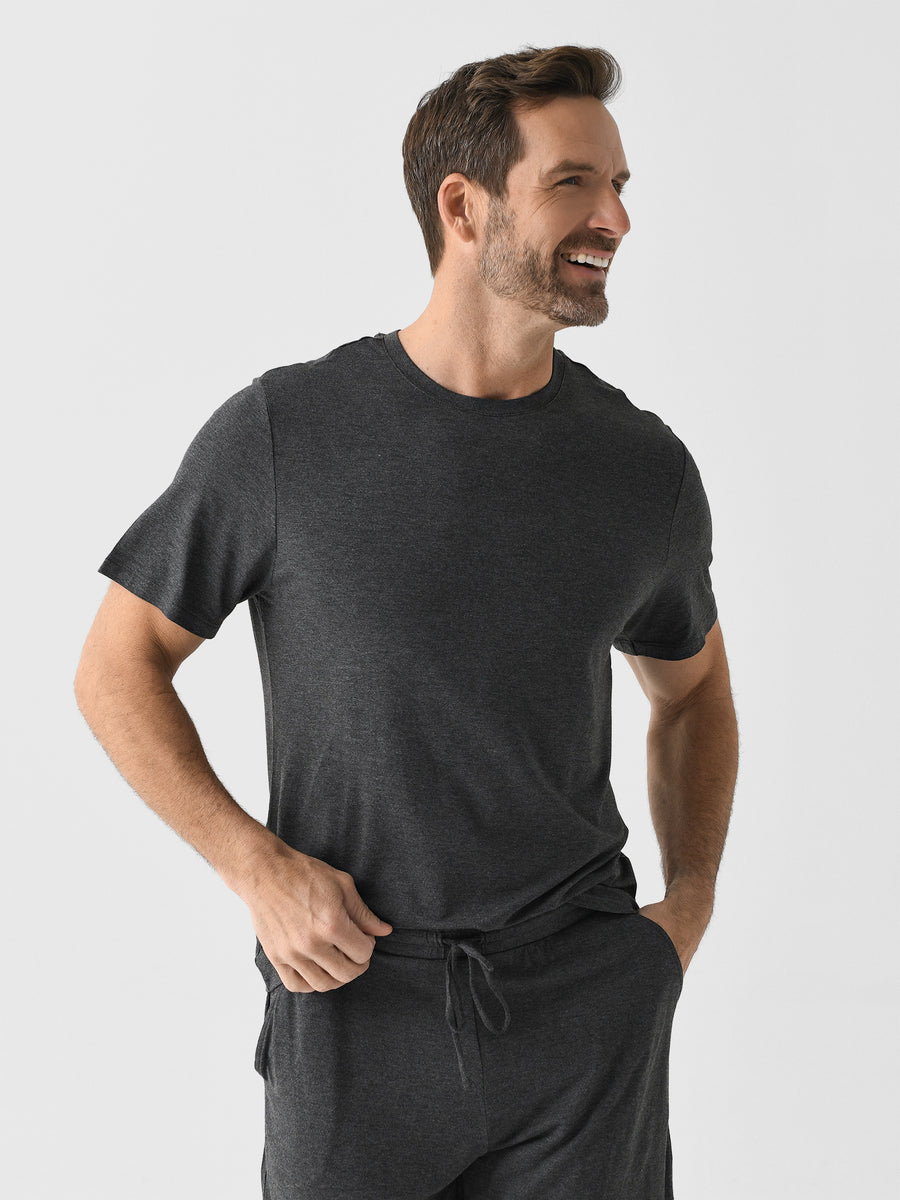 A crewneck tee and short pajama set made from incredibly soft and sustainable fabric.