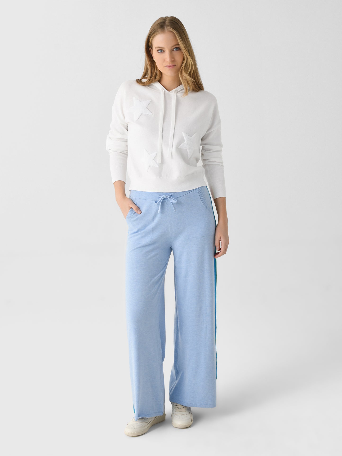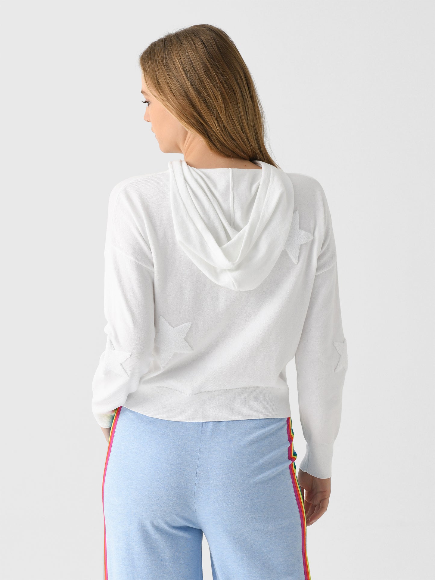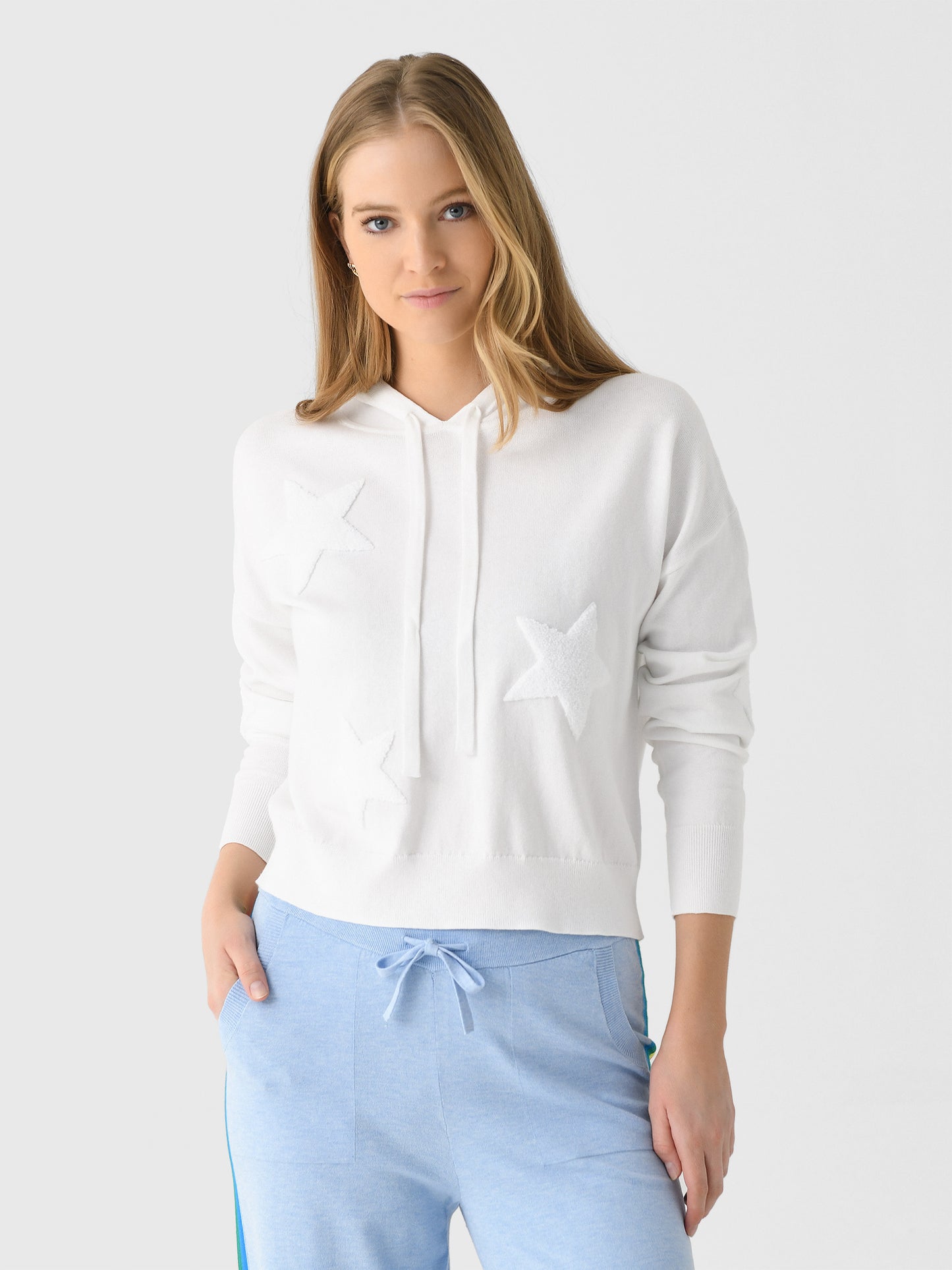 This casual sweater is made from soft cotton and features tonal star appliqués and a drawstring hood.