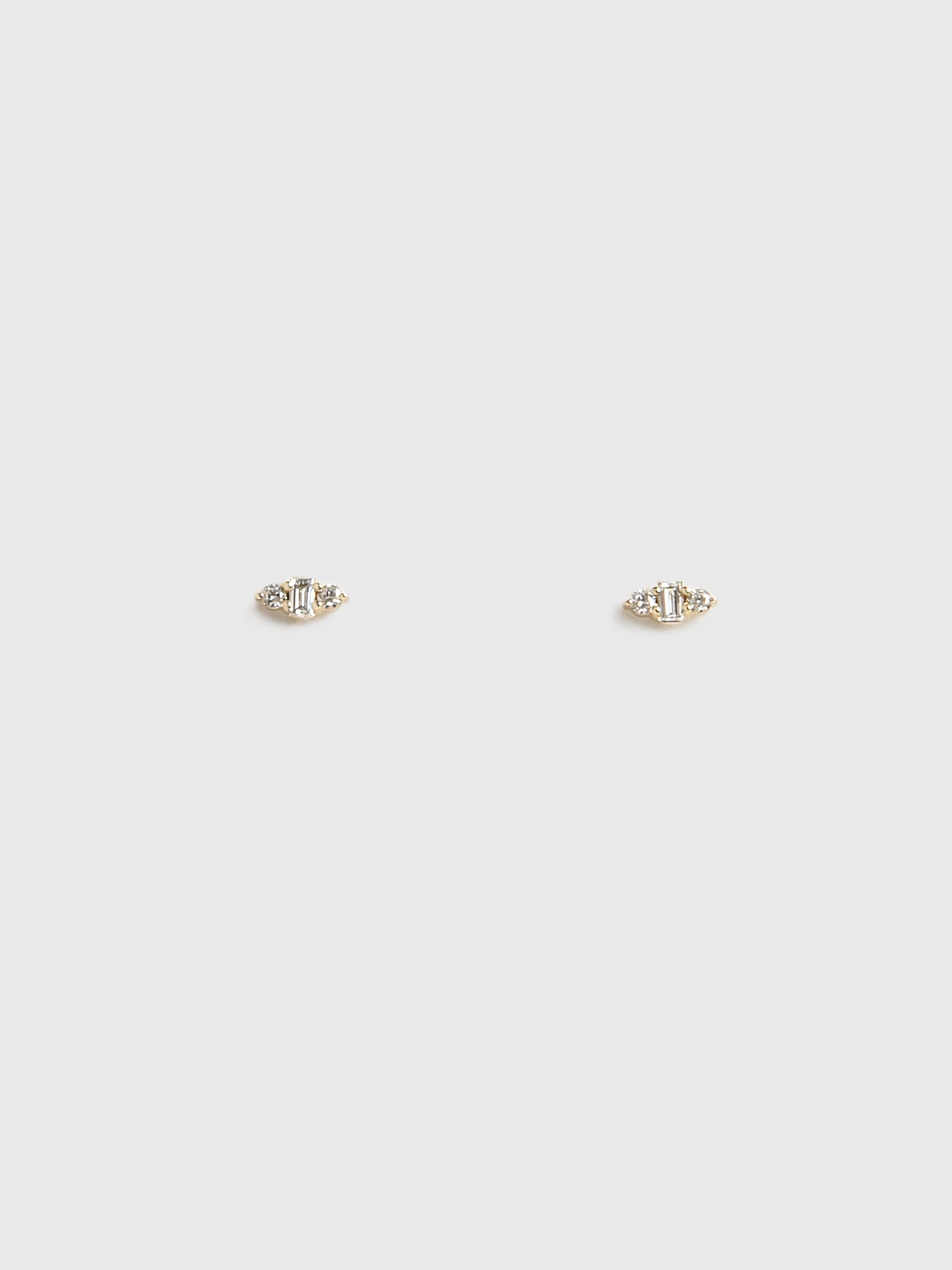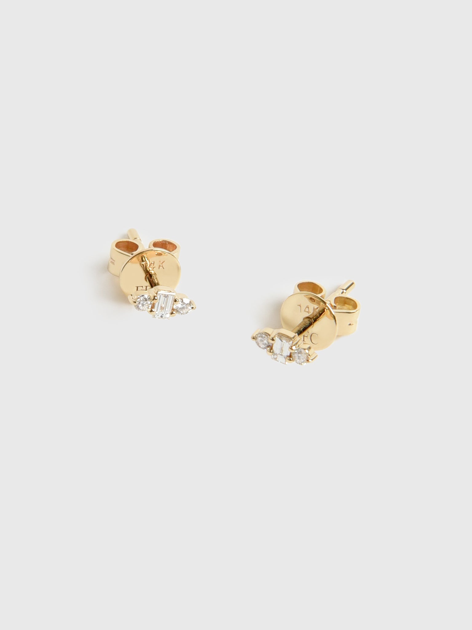 A pair of 14-karat yellow gold stud earrings with dainty diamond stones.