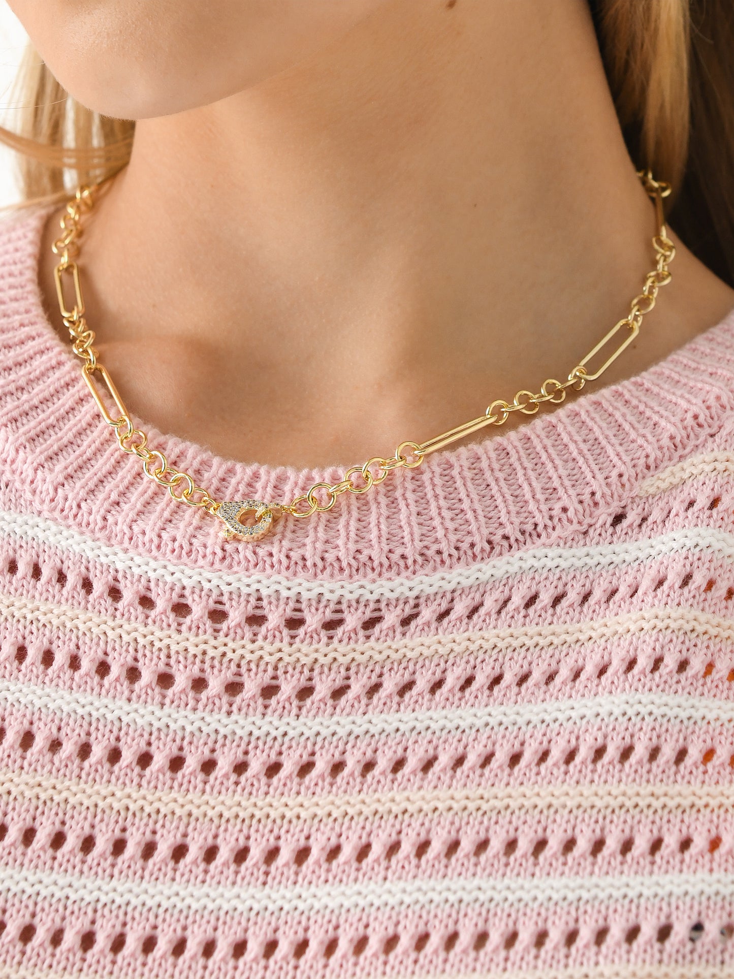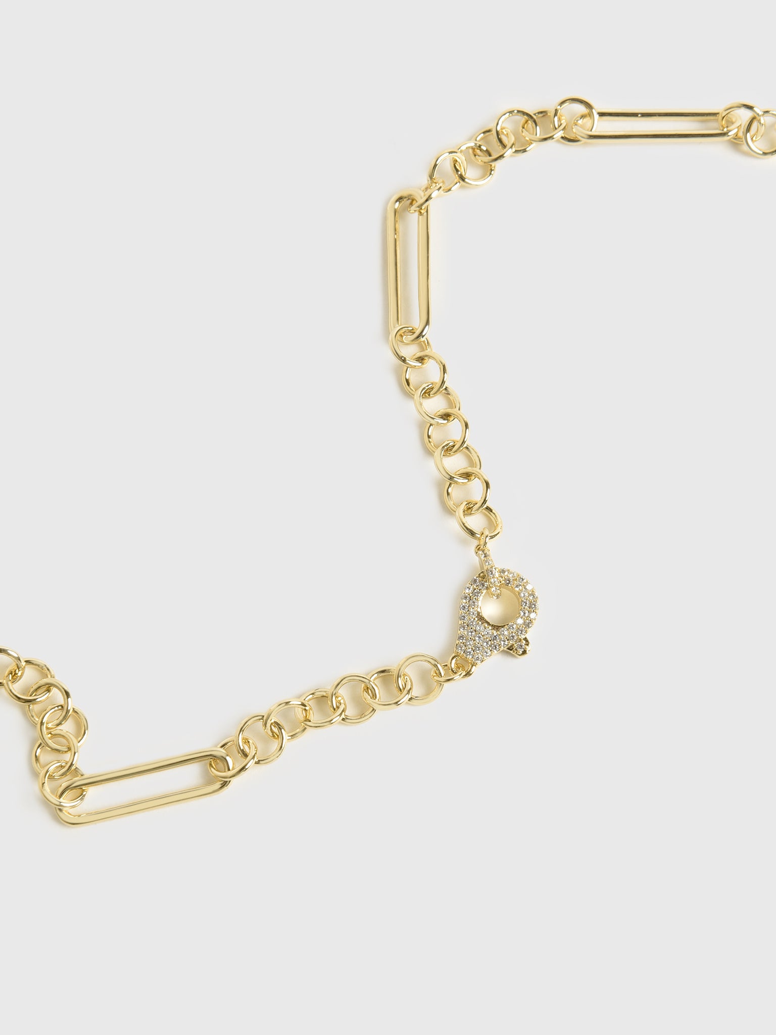 A chunky necklace made from 14-karat gold-plated brass with a pavé crystal embellished clasp.