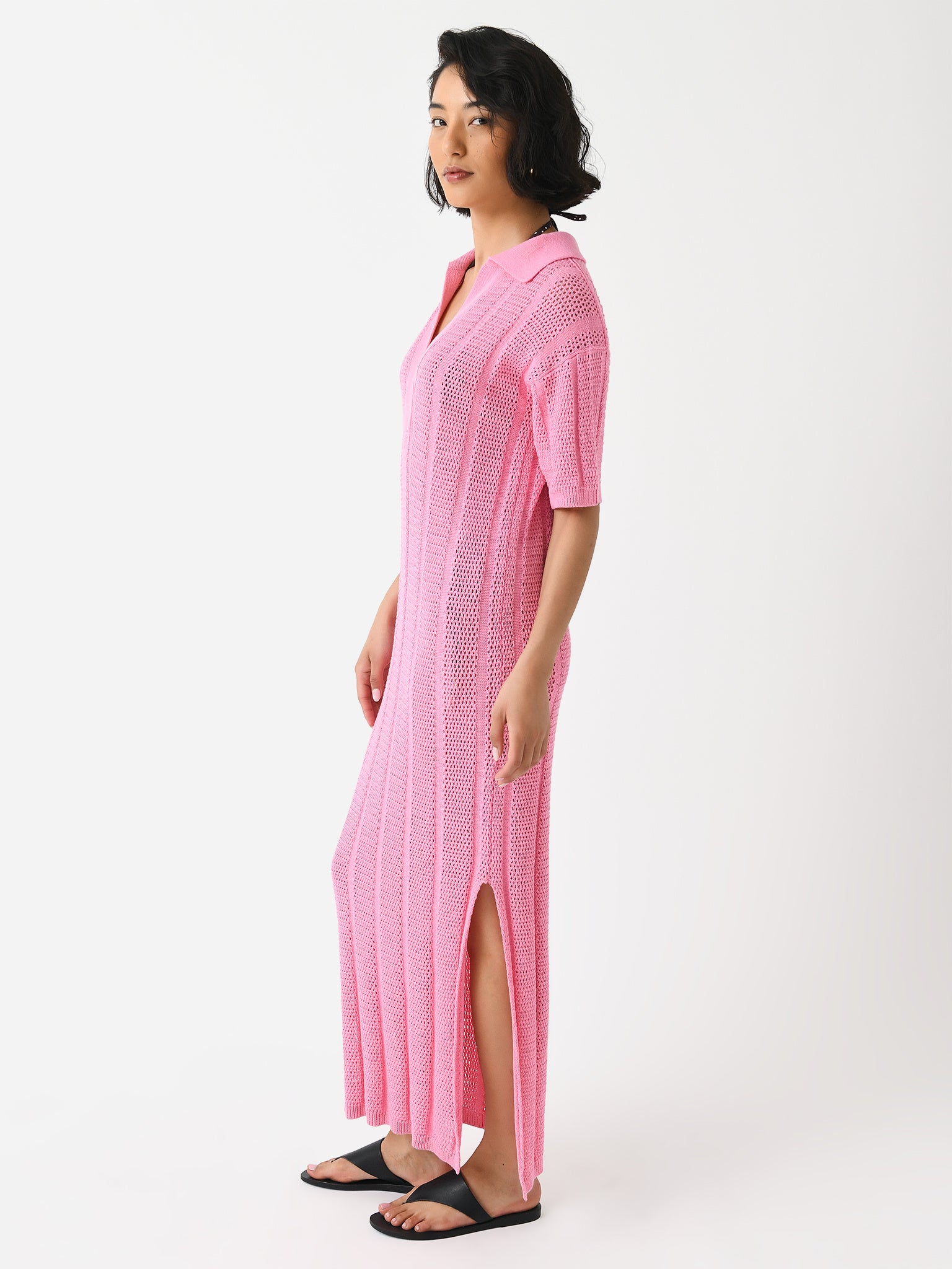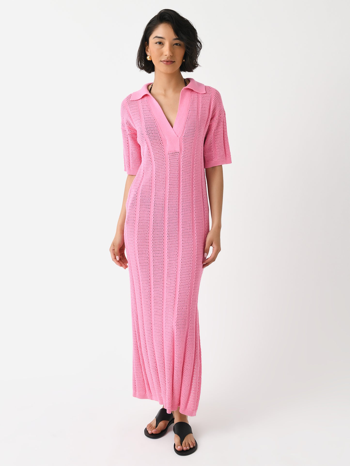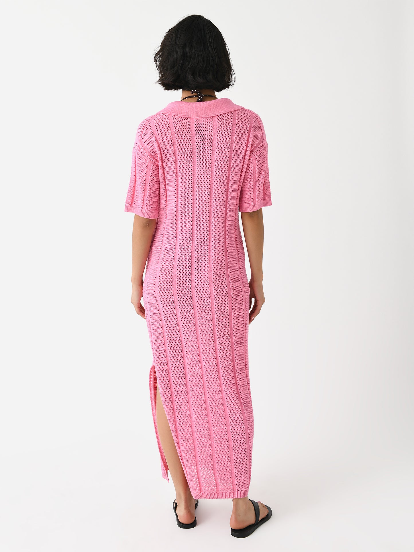 A versatile polo-style dress constructed from Pima cotton with a lace-mesh stitch.