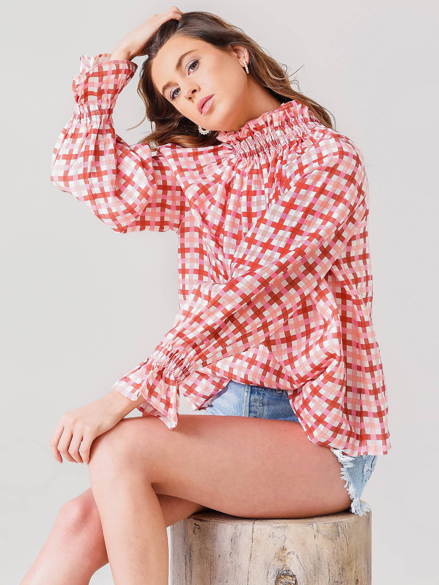 Elevate those pants and heels for happy hour with the tattersall-linen Ephemera Women's Garland Blouse.