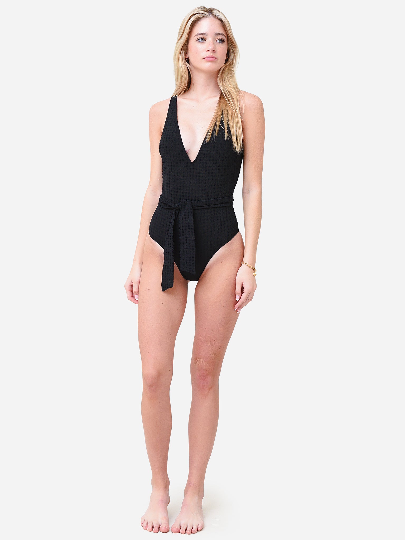 - Model is wearing size Small swimsuit.