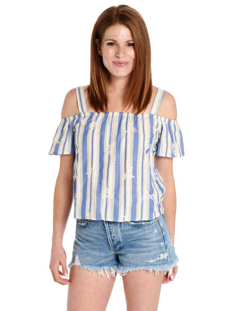 Be right on trend in the Everly Off The Shoulder Embroidered Top.