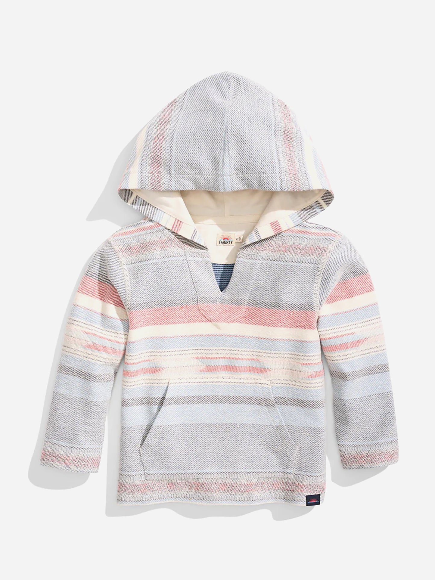 Organic cotton hoodie constructed from multi-colored textured knit fabric.