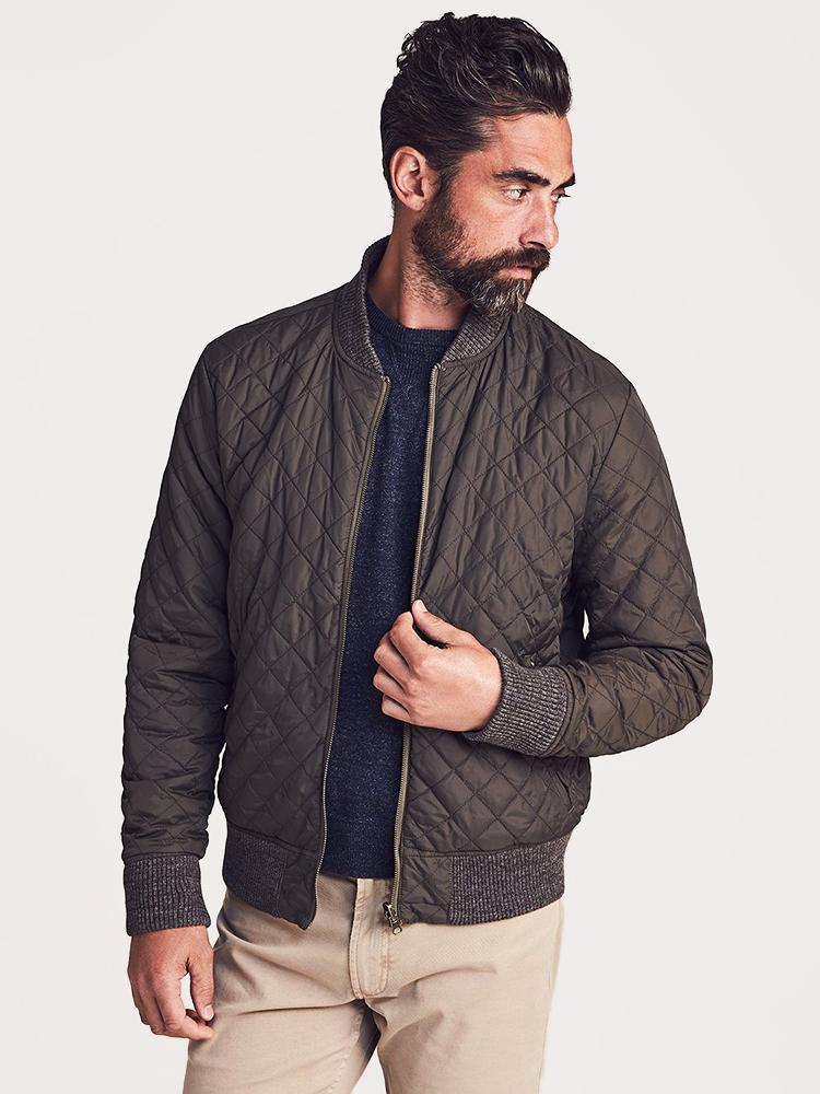 Give your look two edgy vibes in one with the Faherty Brand Men's Reversible Surplus Bomber Jacket. Featuring a traditional quilted fabrication on one side and a heavily washed twill finish on the other.