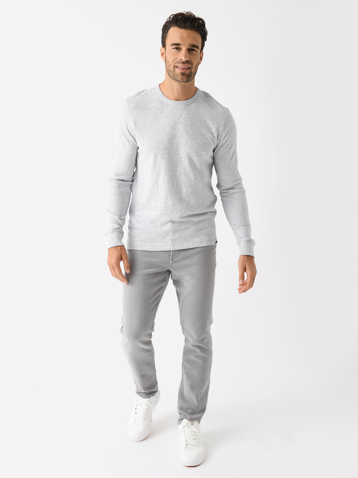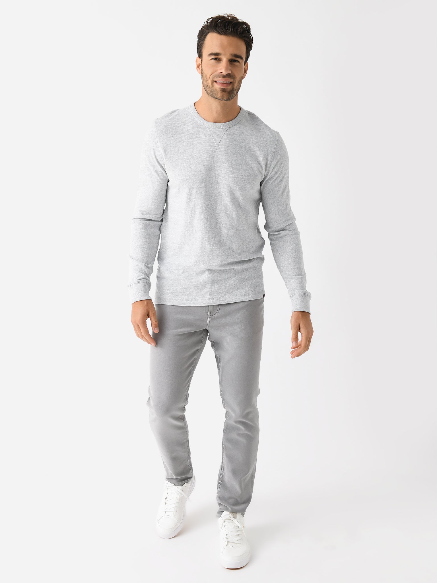 - Light Grey Heather: Model's Measurements: Height: 6'2.5" | Waist: 34" | Inseam: 32" | Collar: 16" | Sleeve: 35" | Suit: 40L