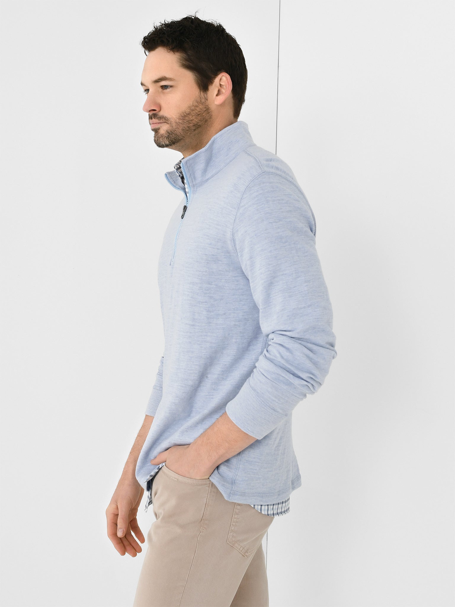 A classic quarter-zip pullover crafted from high-quality organic cotton slub knit fabric.
