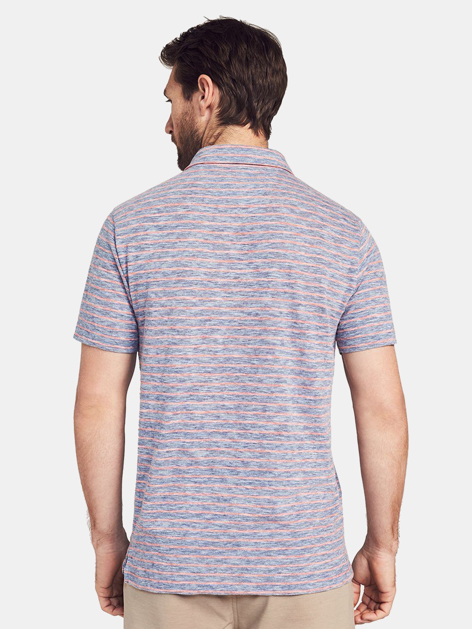 Add the soft and heathered Faherty Brand Short Sleeve Striped Polo to your summer season staples.