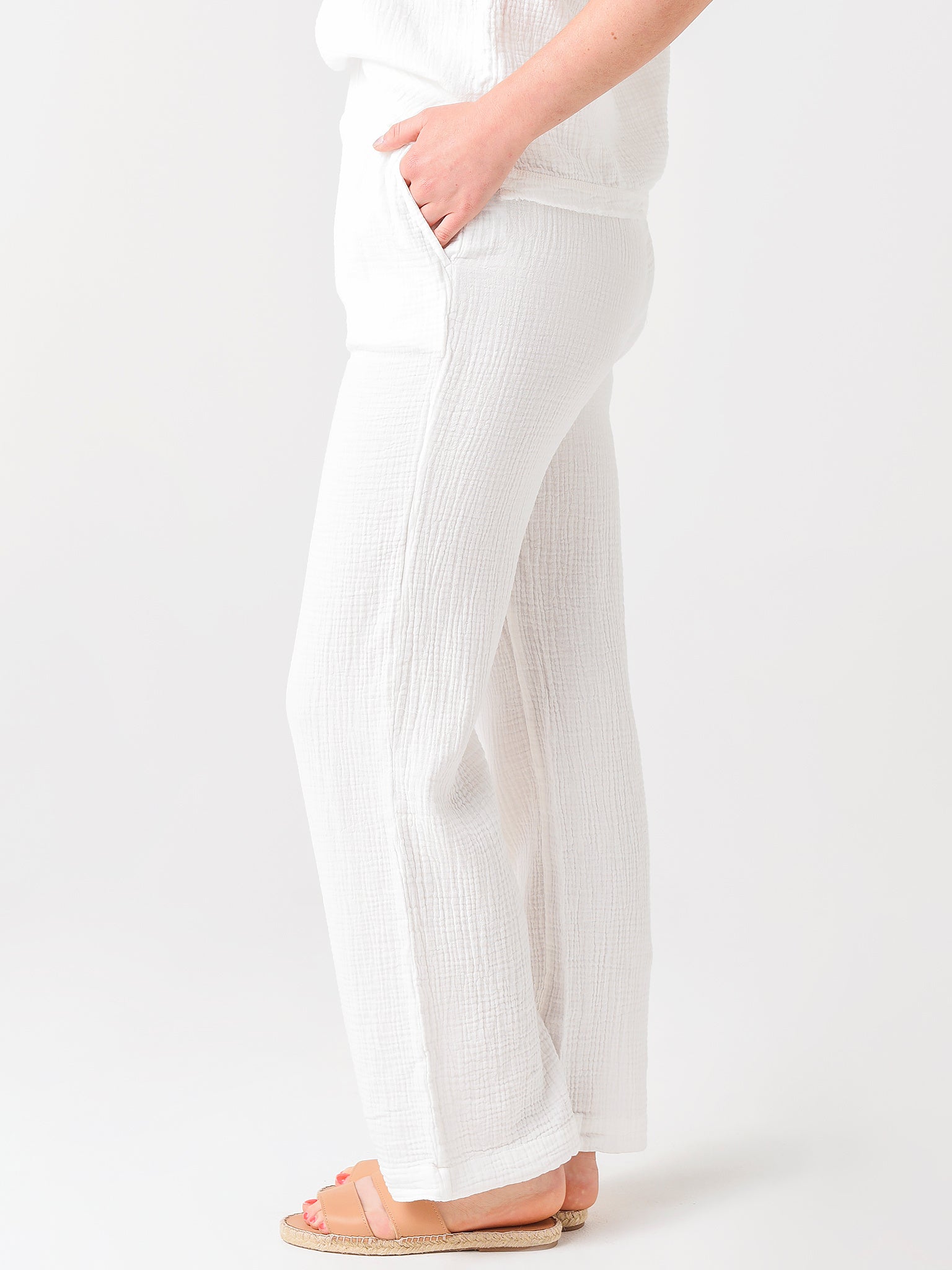 The Faherty Brand Women's Dream Cotton Gauze Wide Leg Pant easily transports you to where your mind is at ease, yes it's that dreamy.