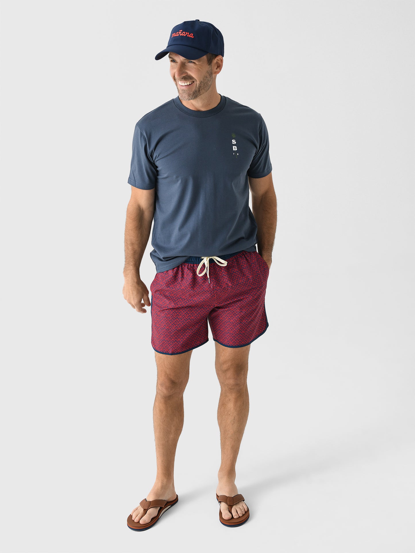 - Model is wearing size Medium swim trunk.