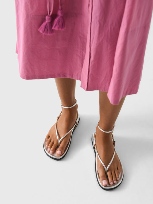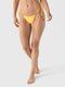 A cheeky bikini bottom made from a sustainable fabric blend with adjustable side ties and bead details.
