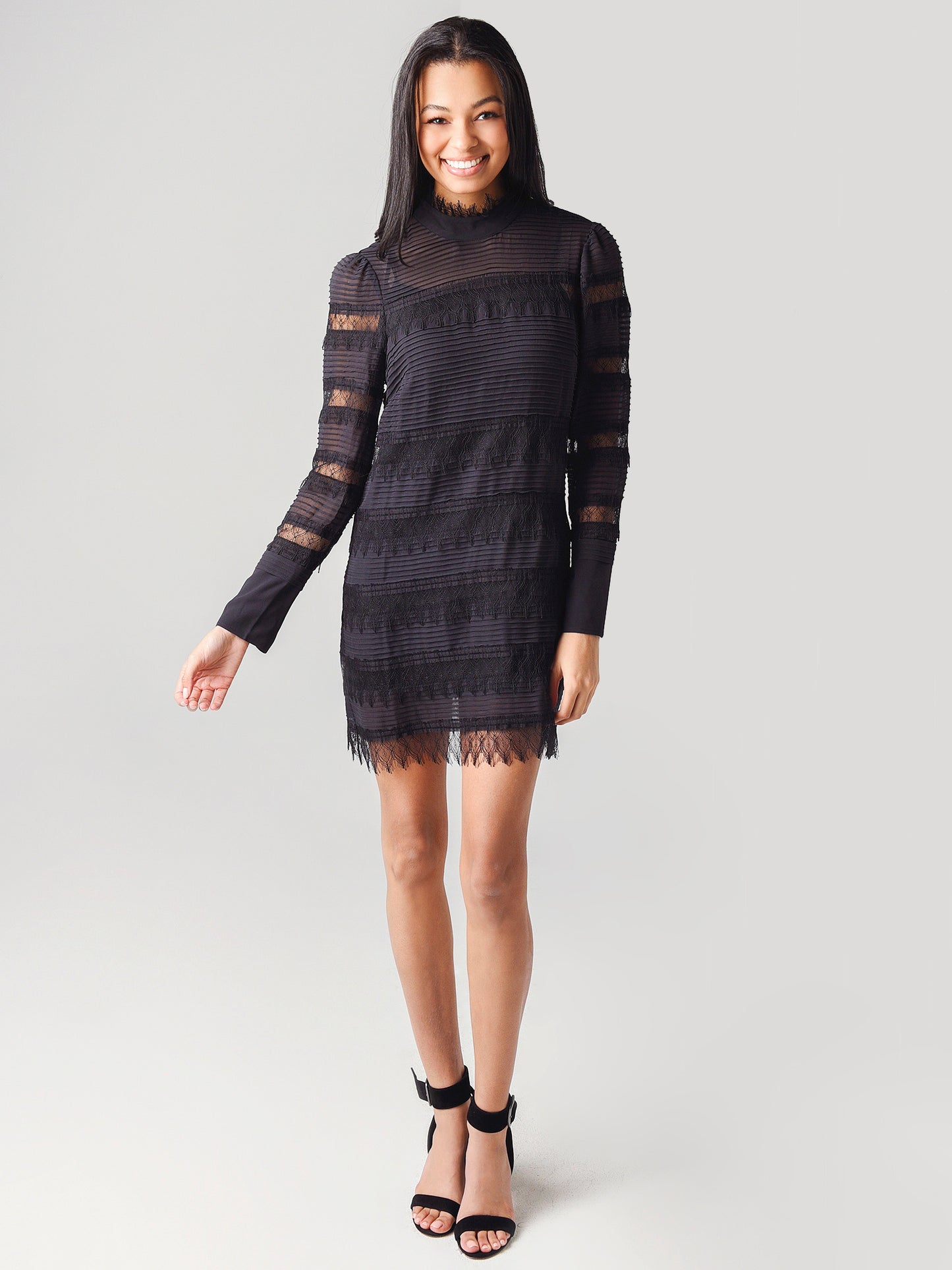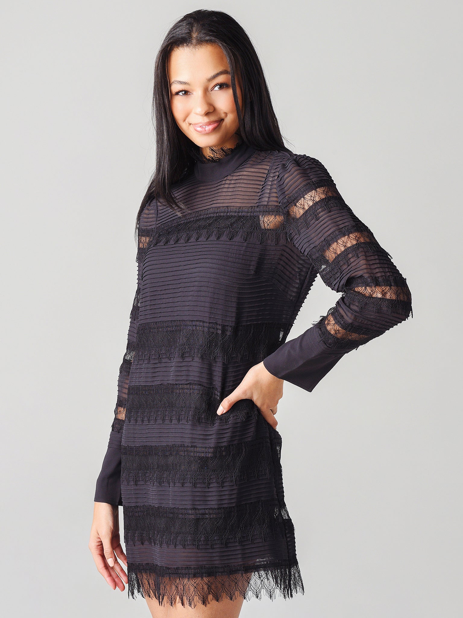 The Frame Women's Nora Dress is an intricate mini inspired by delicate lingerie with darkly romantic styling, date night anyone?