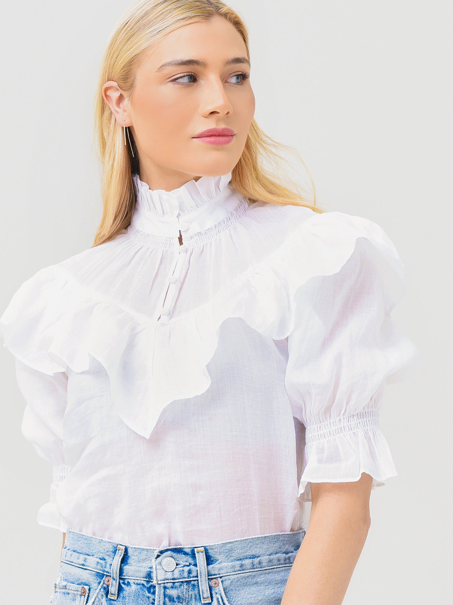 - High Ruffle Neckline