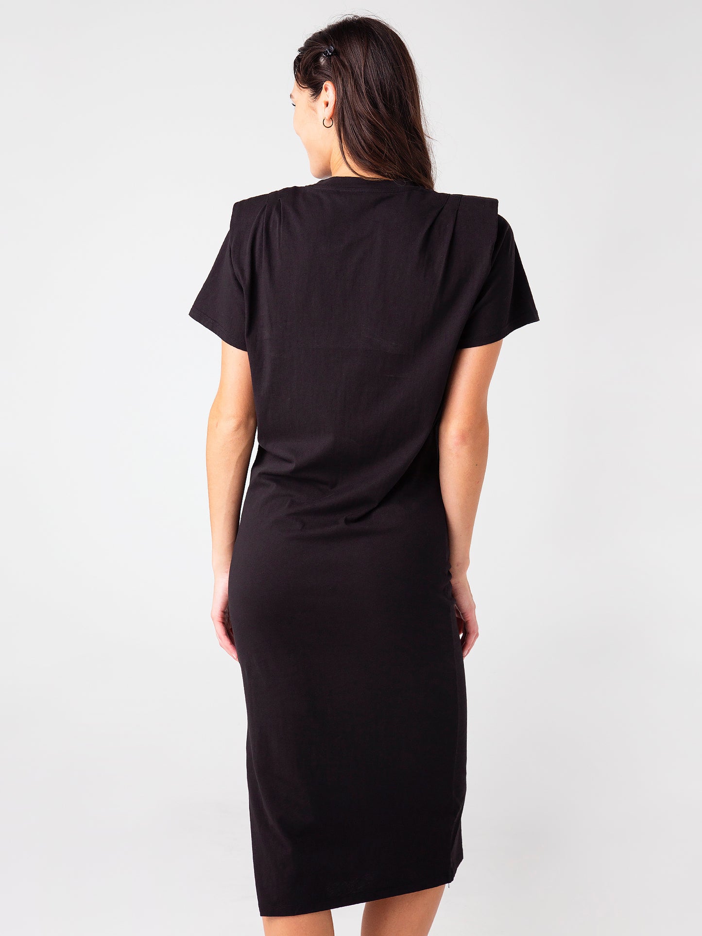Women's Short Sleeve Padded Shoulder Midi Dress