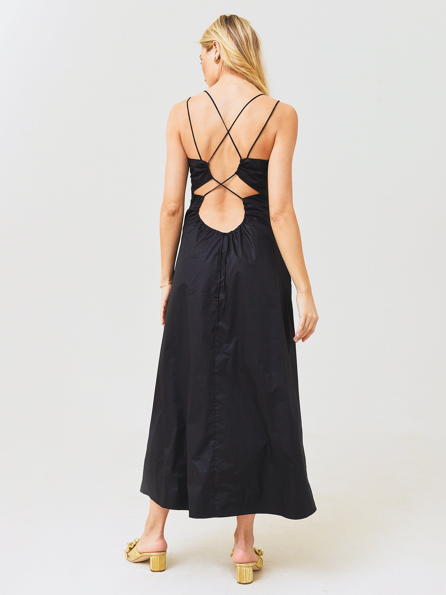 Mid-length dress with an elegant open back detail.