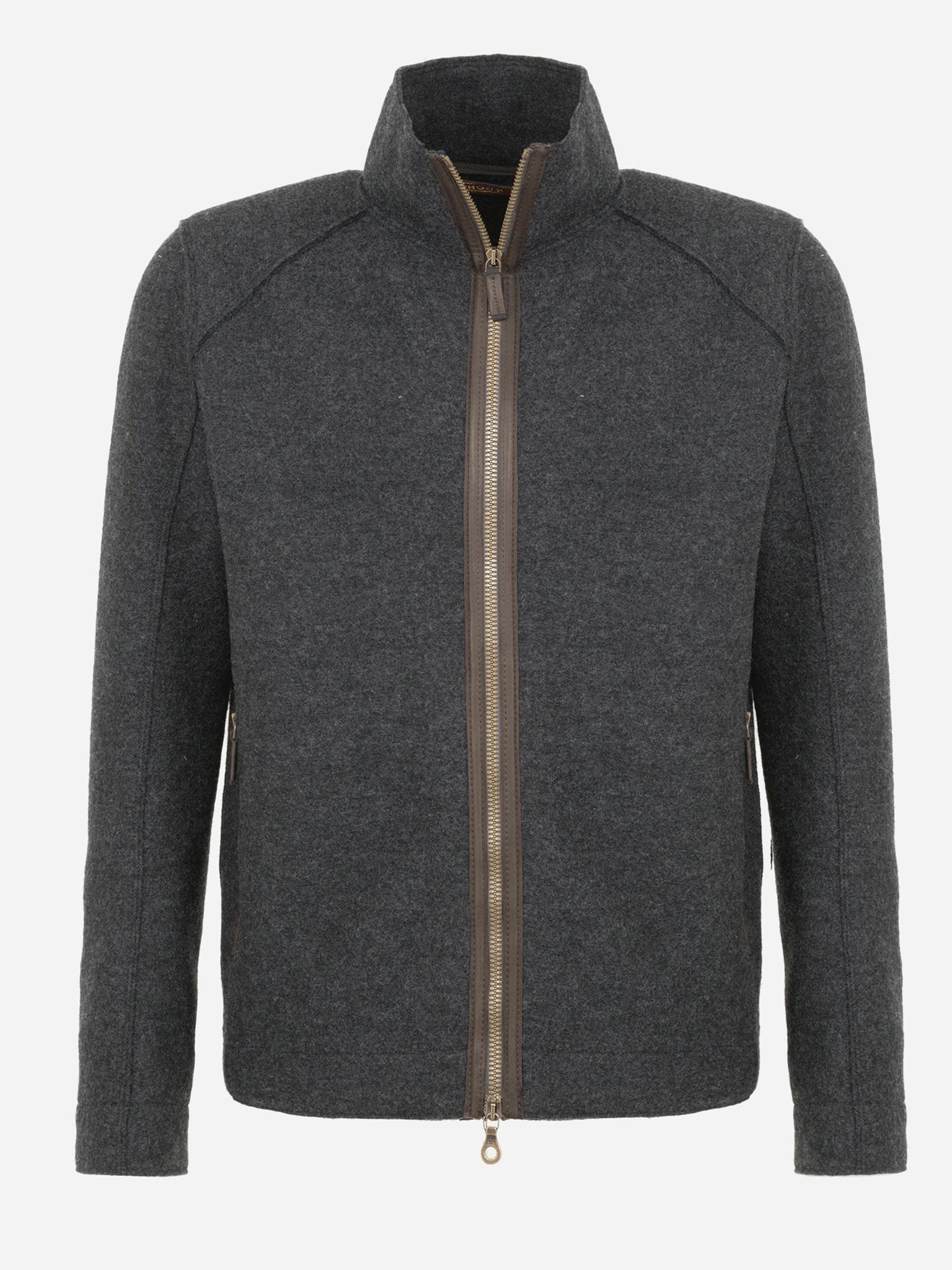 This casual jacket is made from soft boiled wool and features zipper pockets and a two-way zip closure.