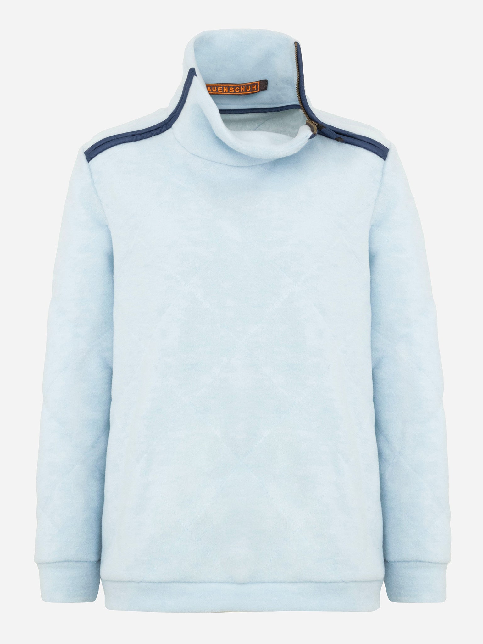 An ultra-soft pullover made from a polyester wool blend with a unique zip neckline.