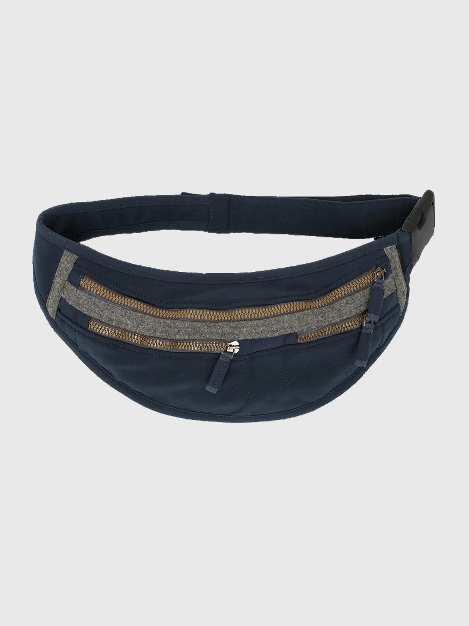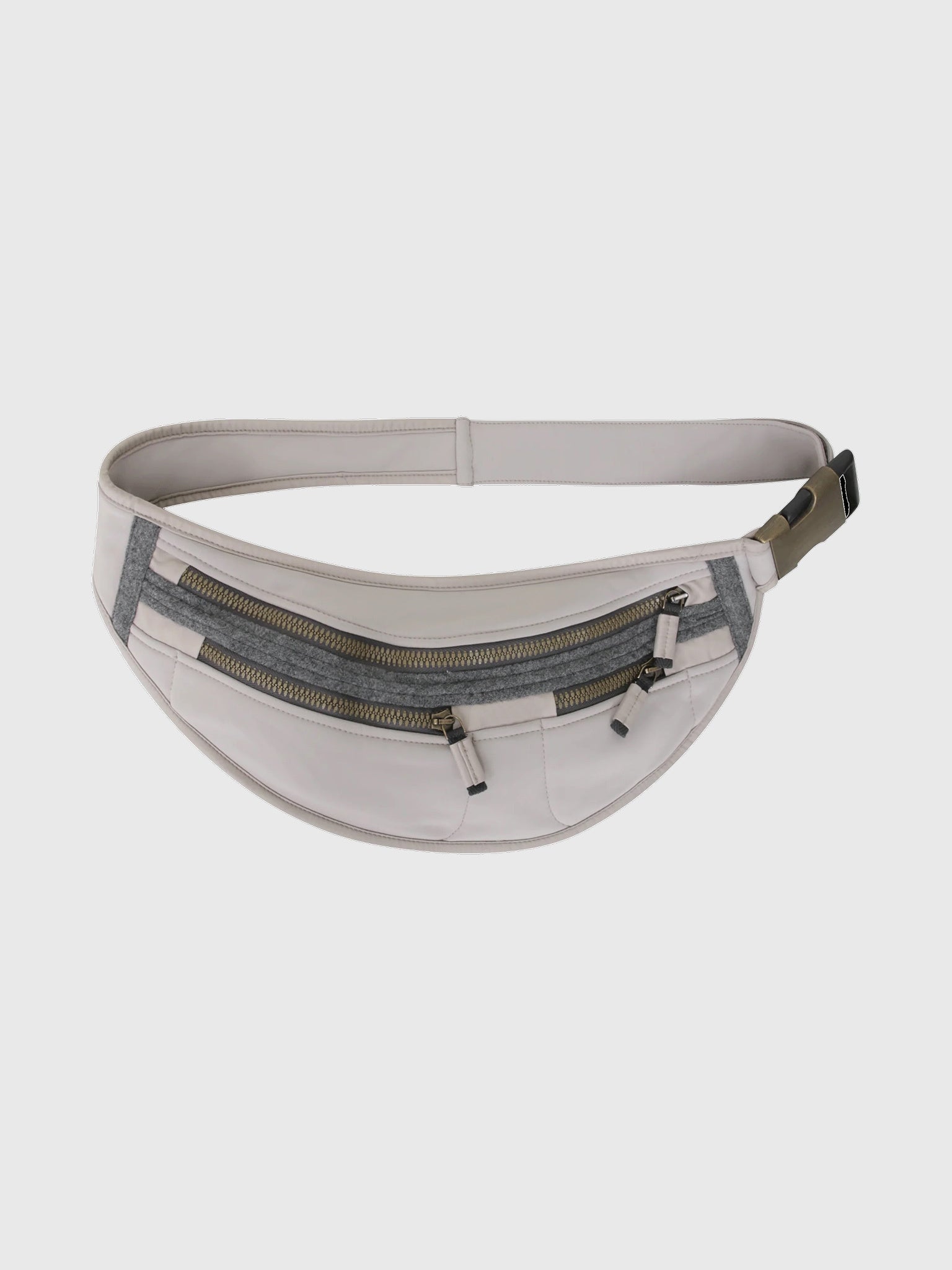 Softshell beltbag with zip compartments and a water-repellent lining.