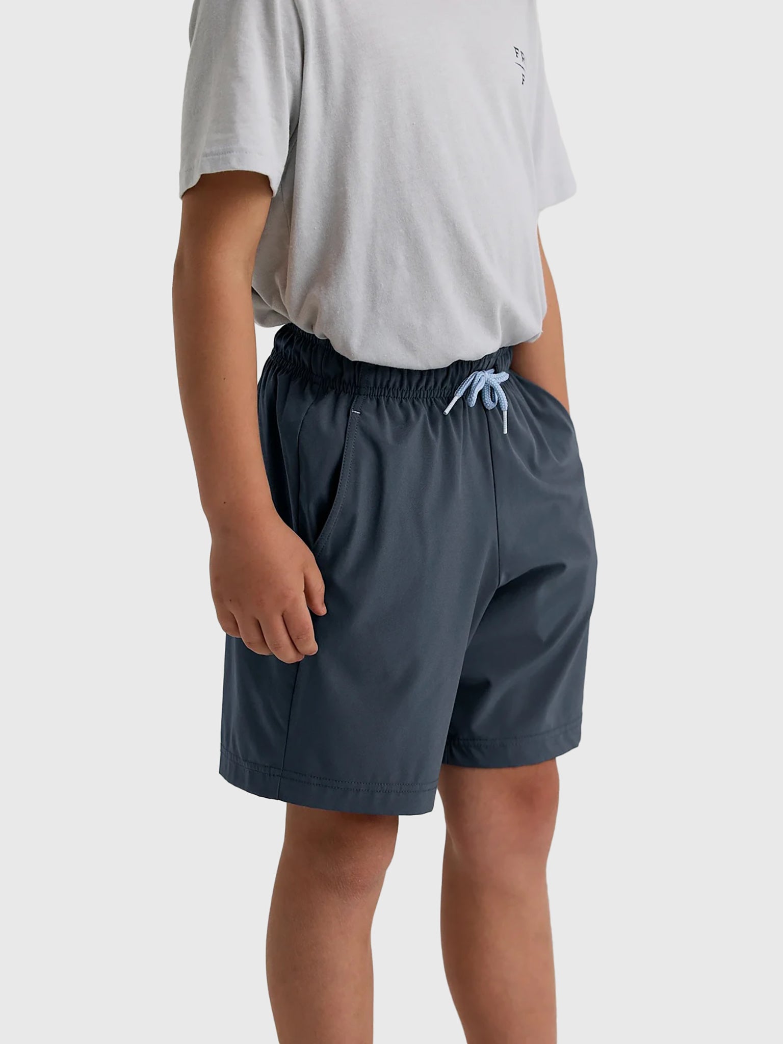 Versatile short equipped with sun protection technology and moisture-wicking properties.