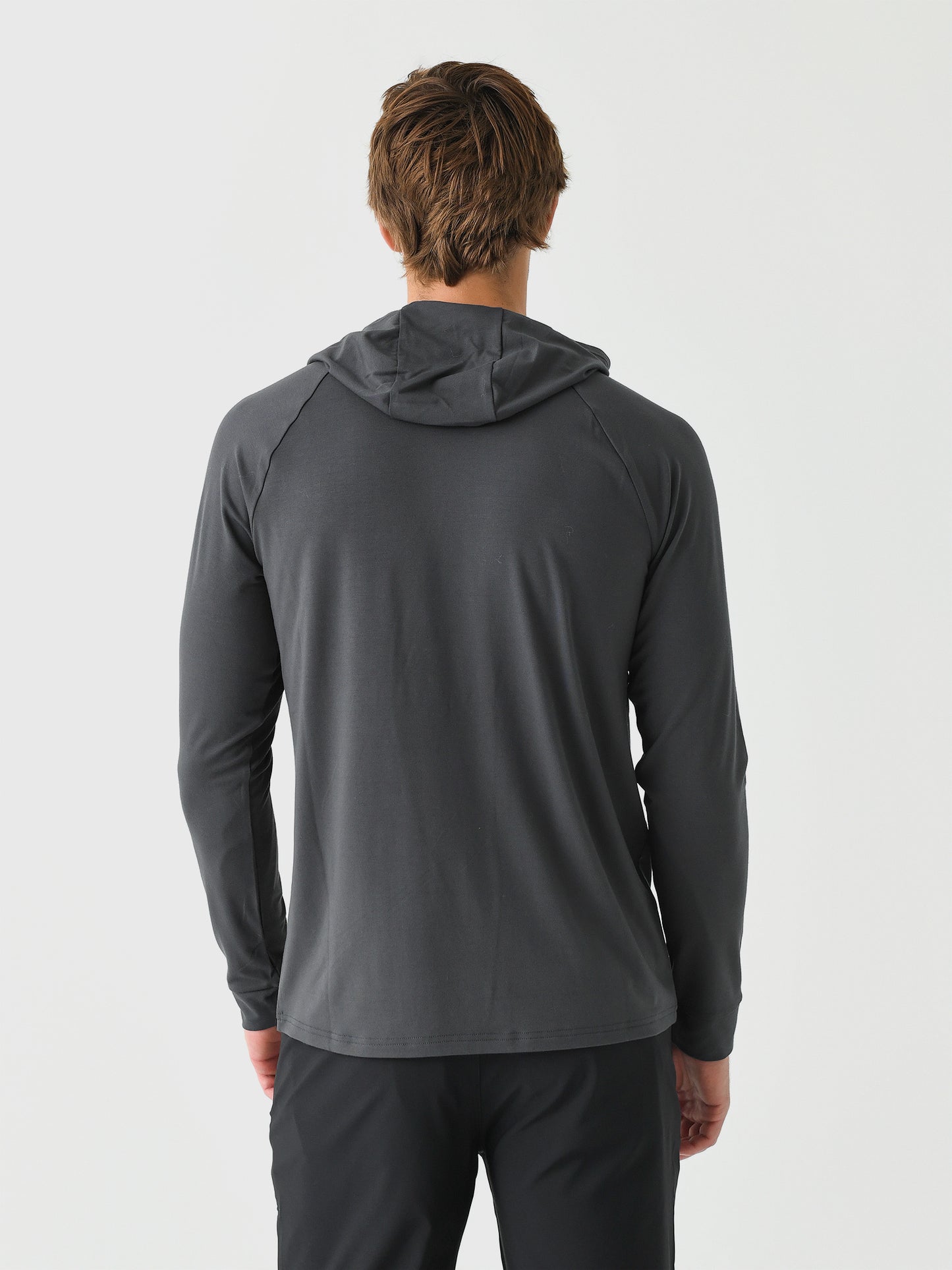 Breathable long-sleeve hooded tee with comfortable stretch and sun protection technology.