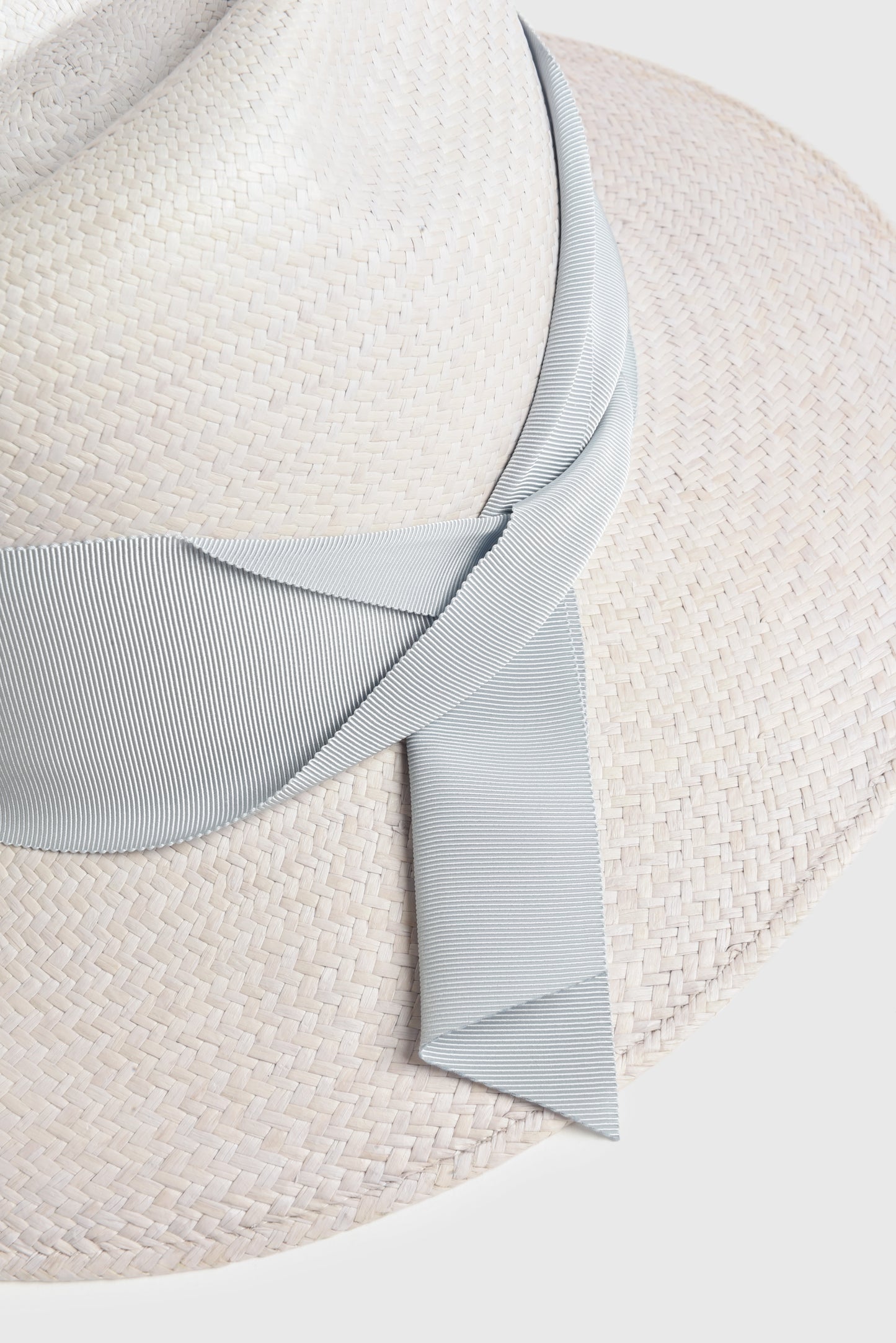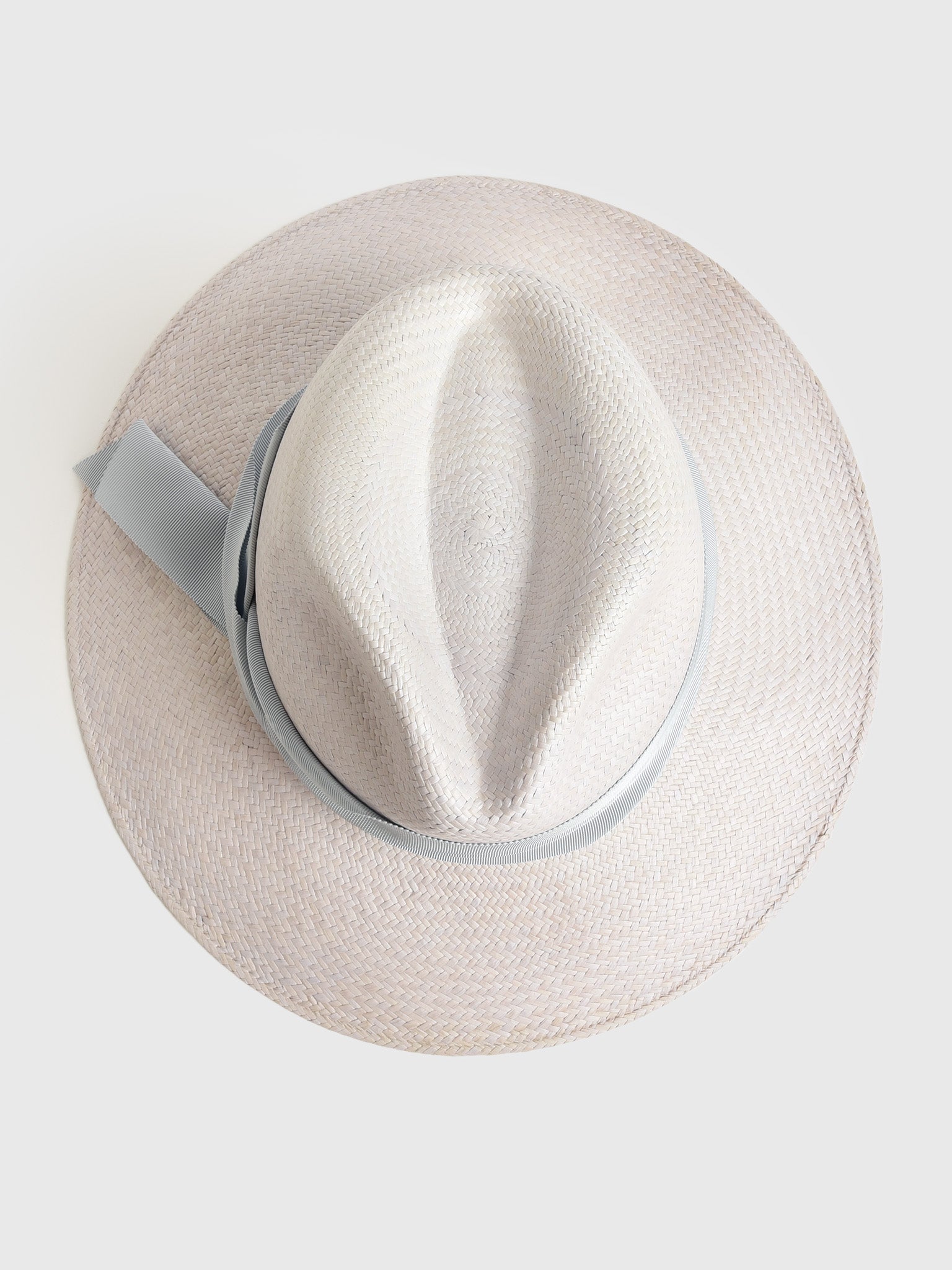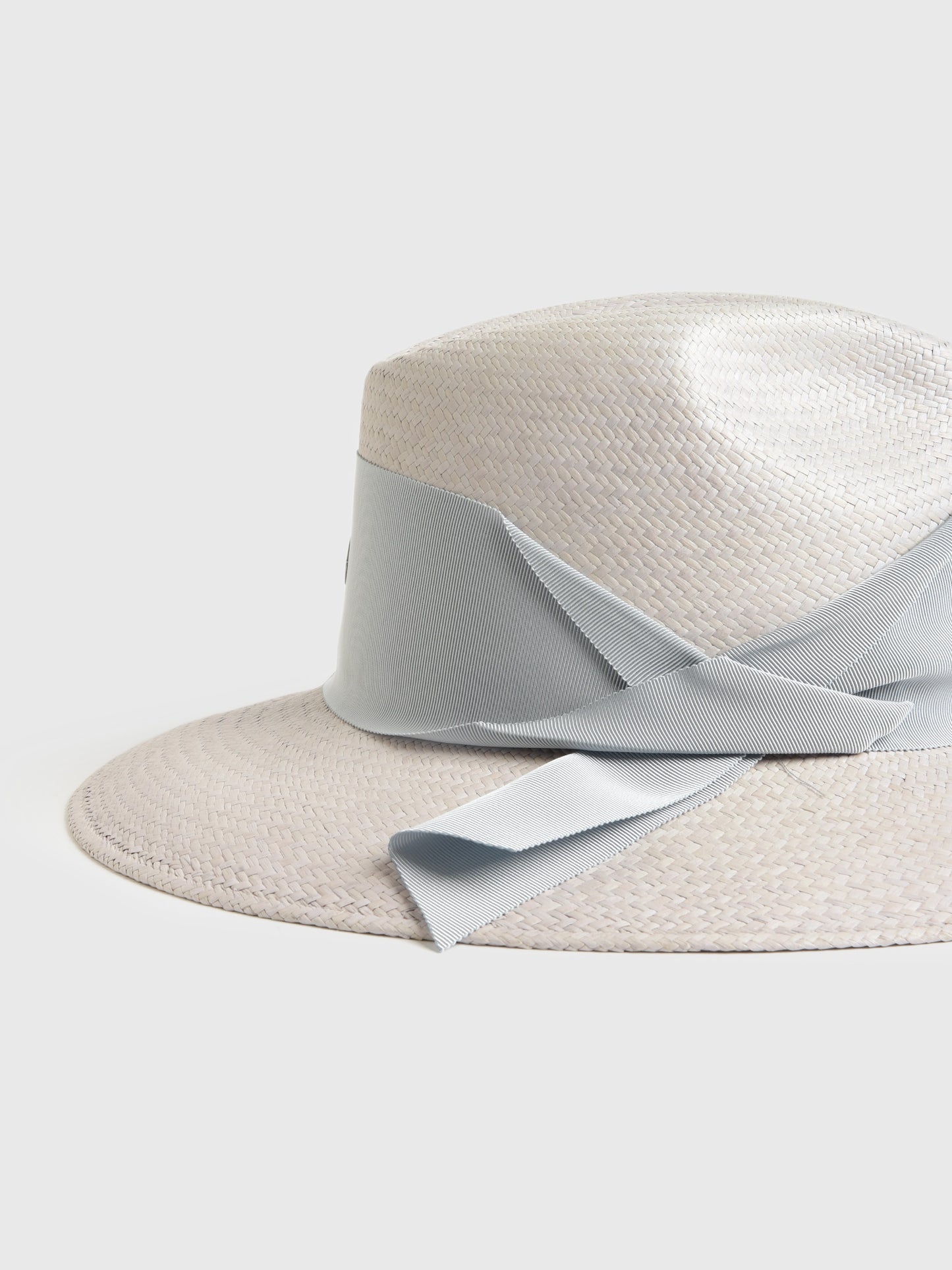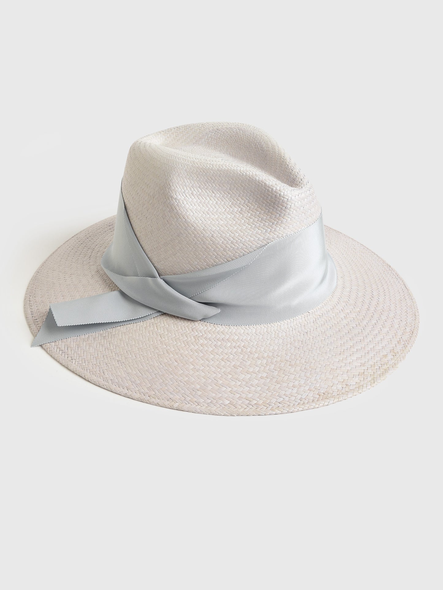 A handwoven straw hat with a tonal asymmetrical grosgrain band.