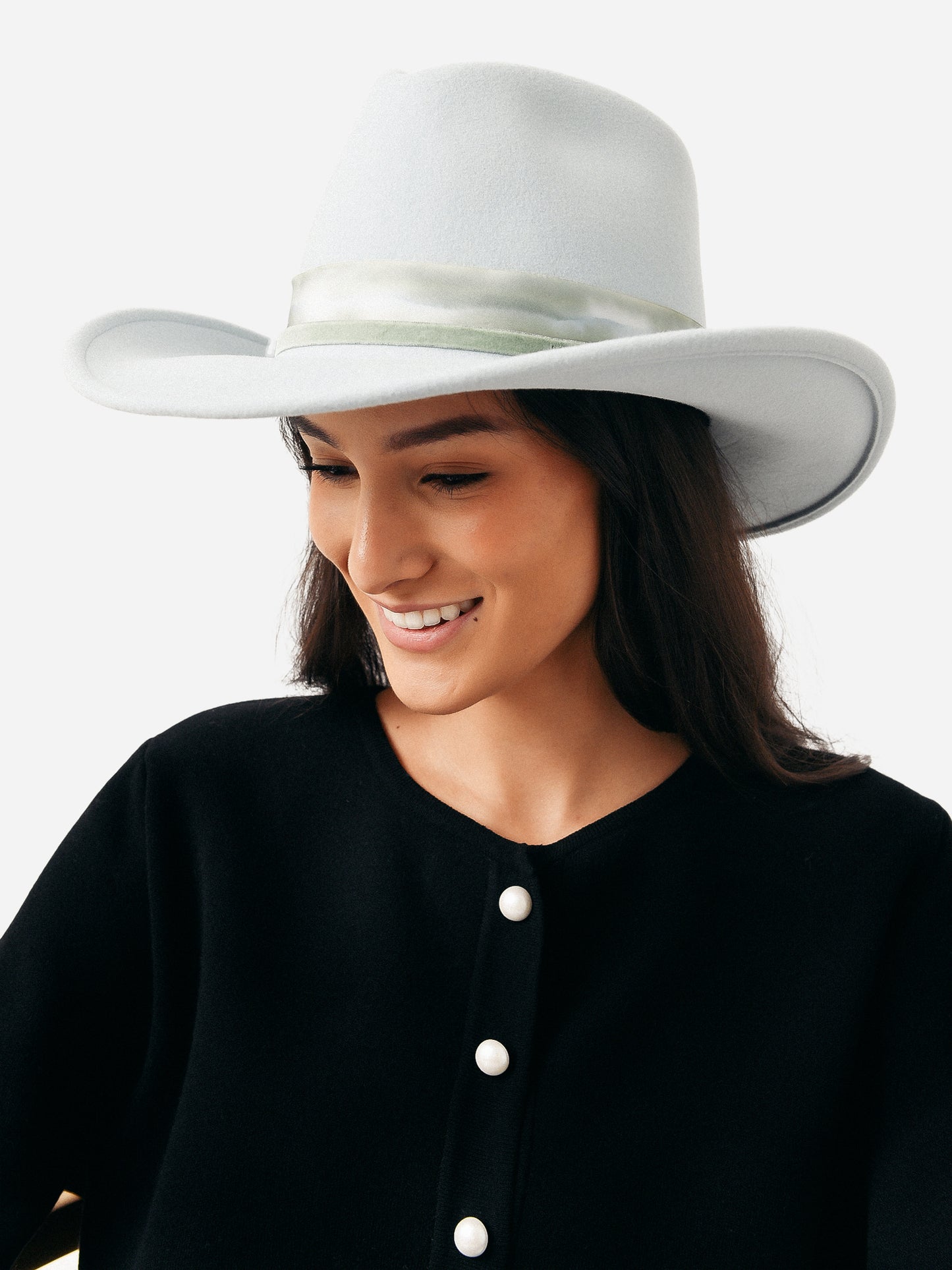 Wide-brimmed felt hat with sun protection technology.