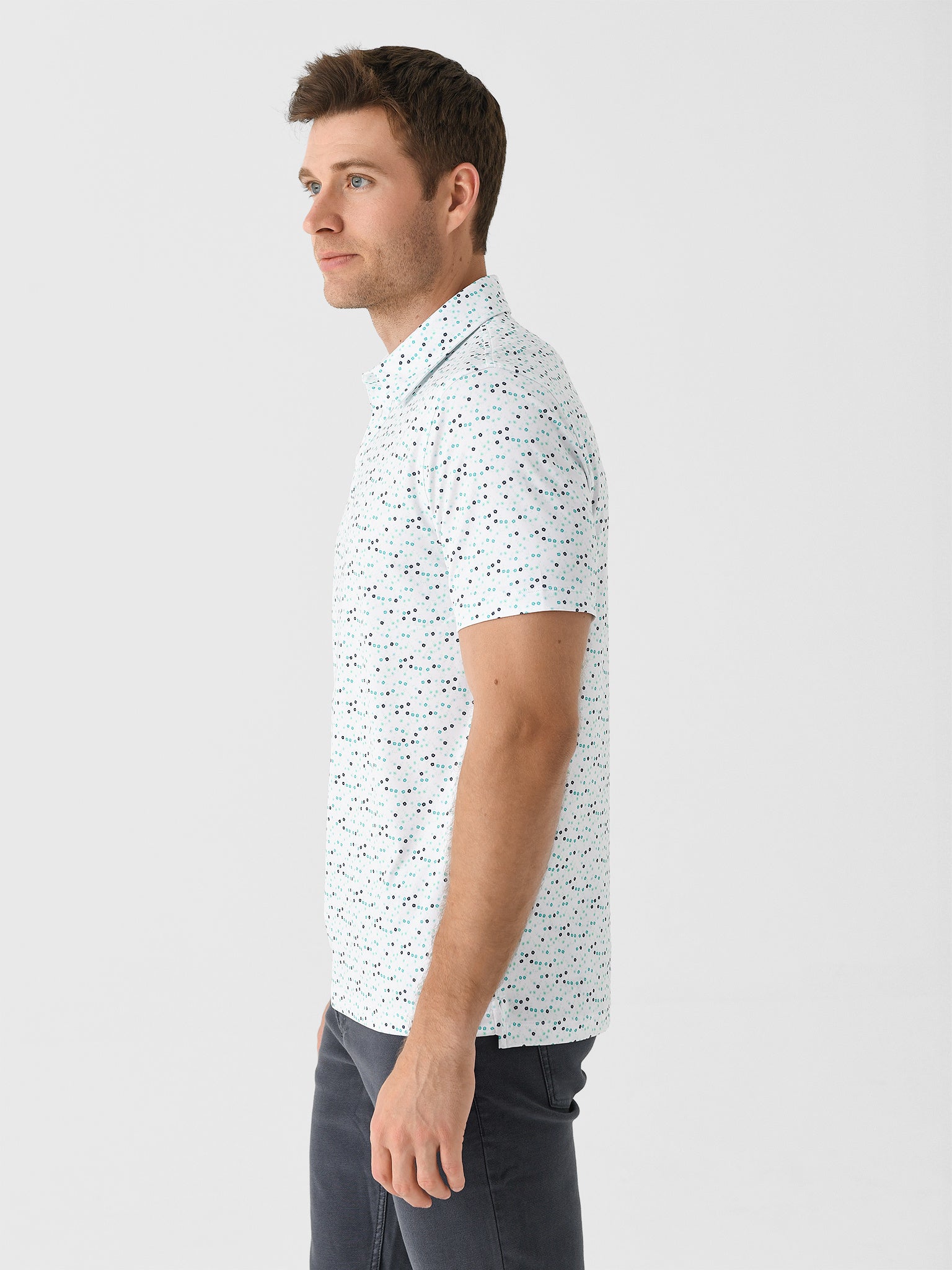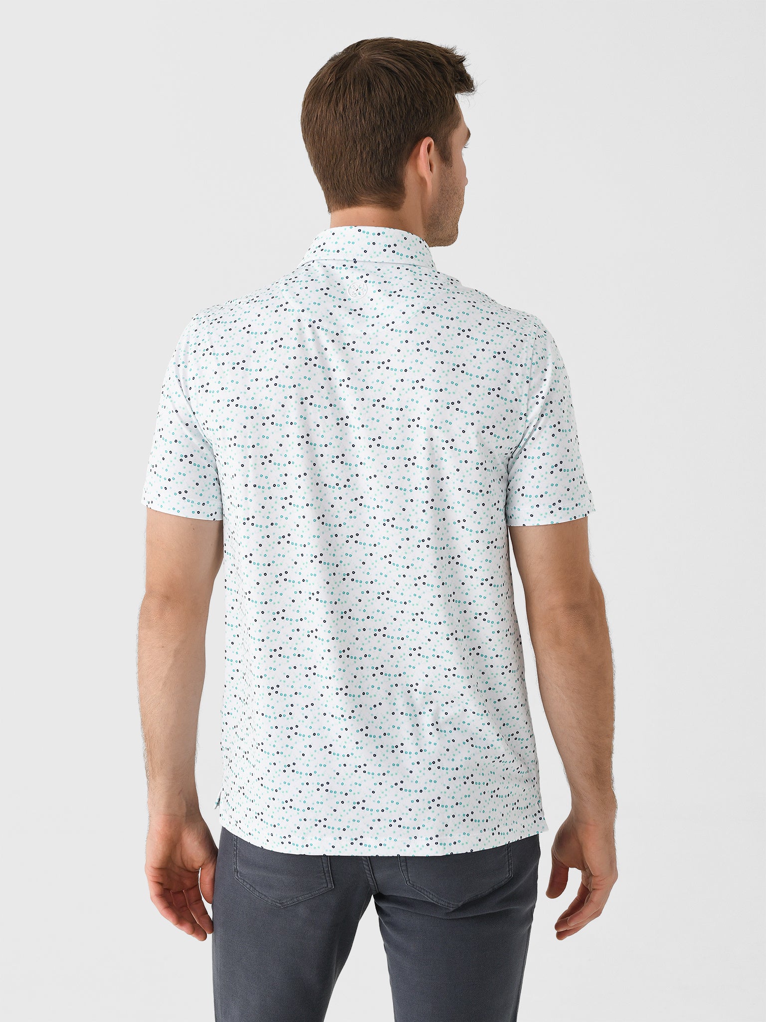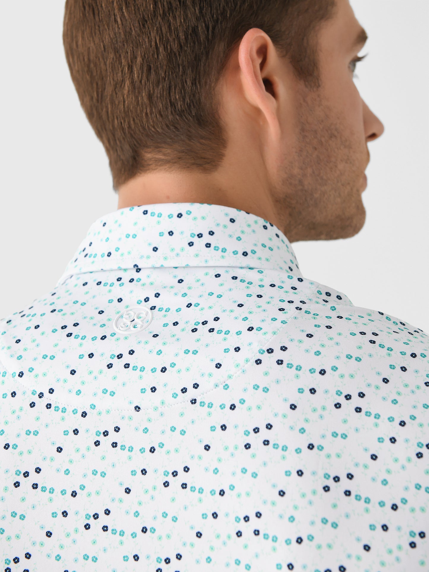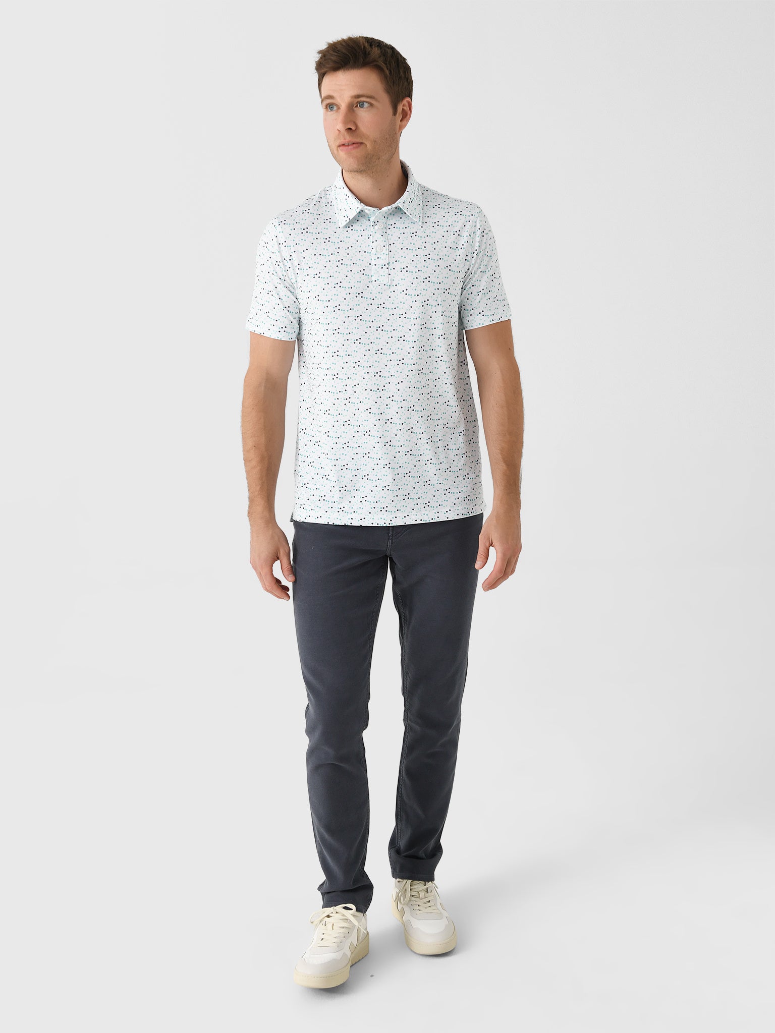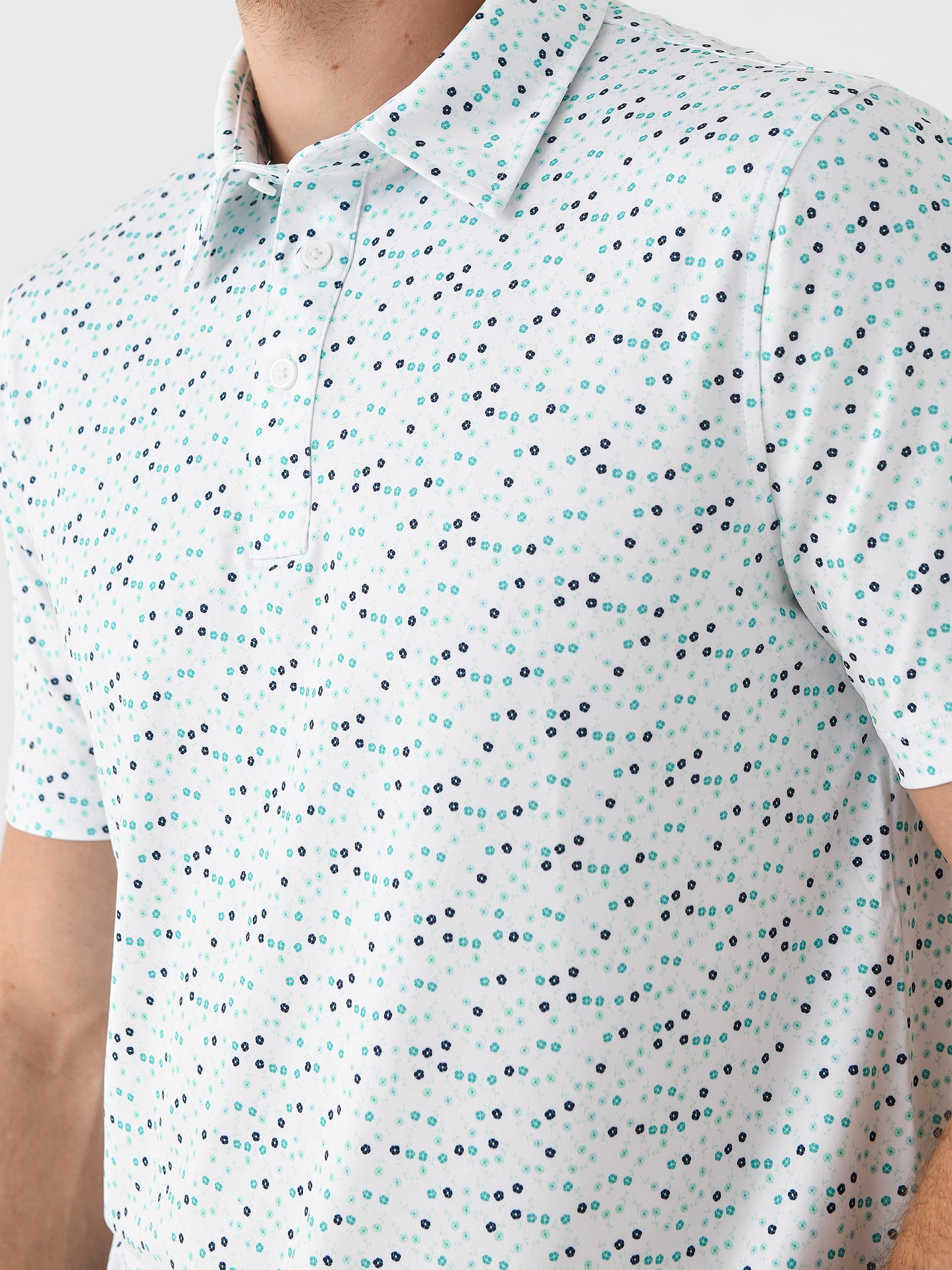 Elevate your golf wardrobe with this breathable polo made from smooth performance fabric with a subtle floral print. Unbeatable four-way stretch provides maximum mobility, while the moisture-wicking and anti-odor properties keep you cool and comfortable.