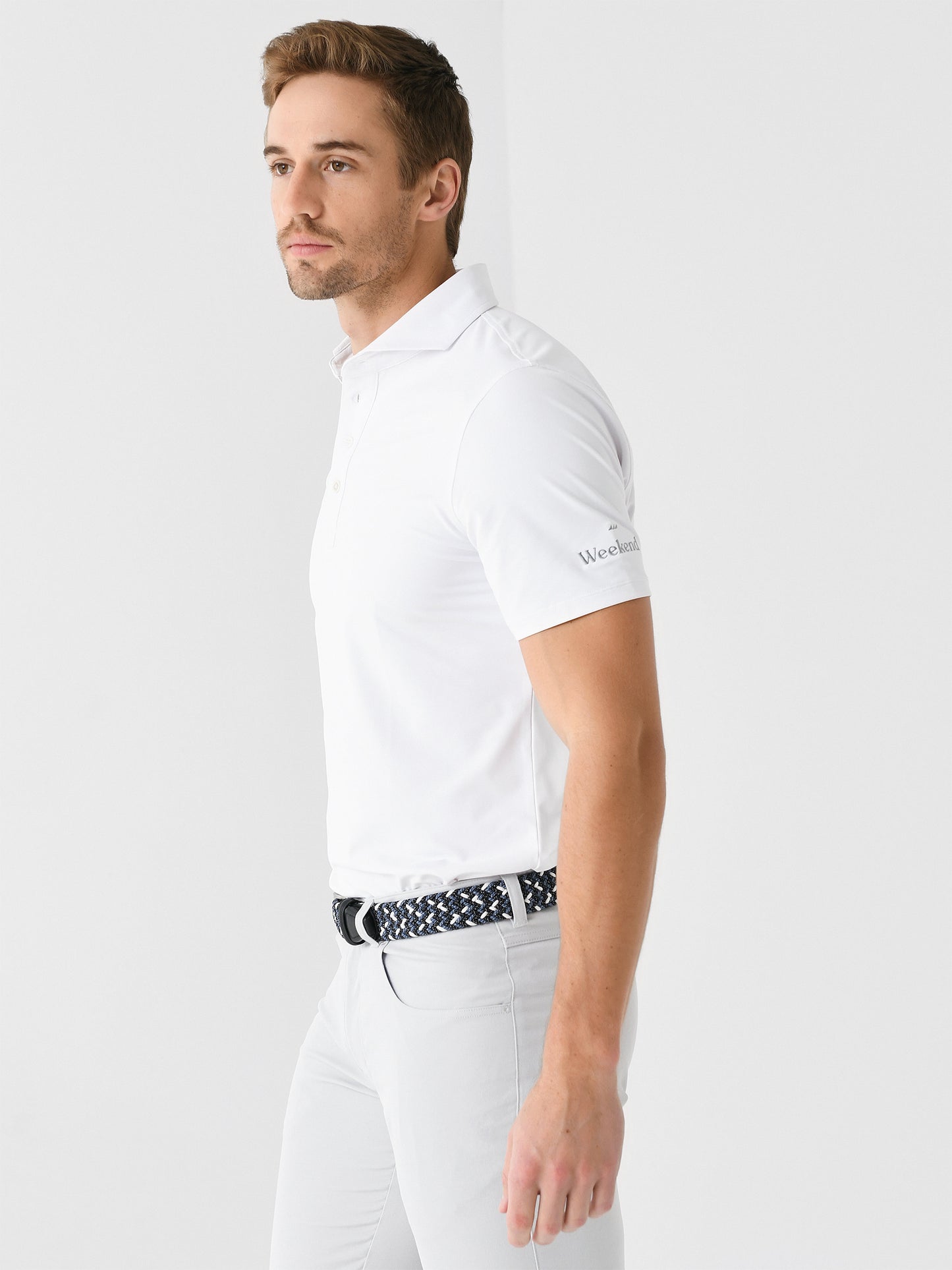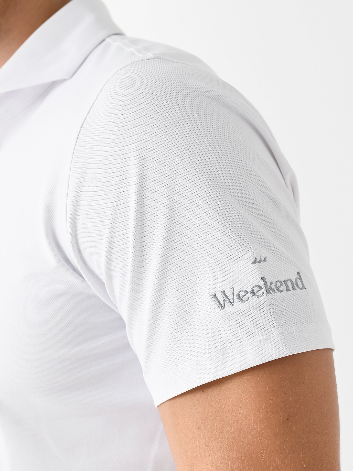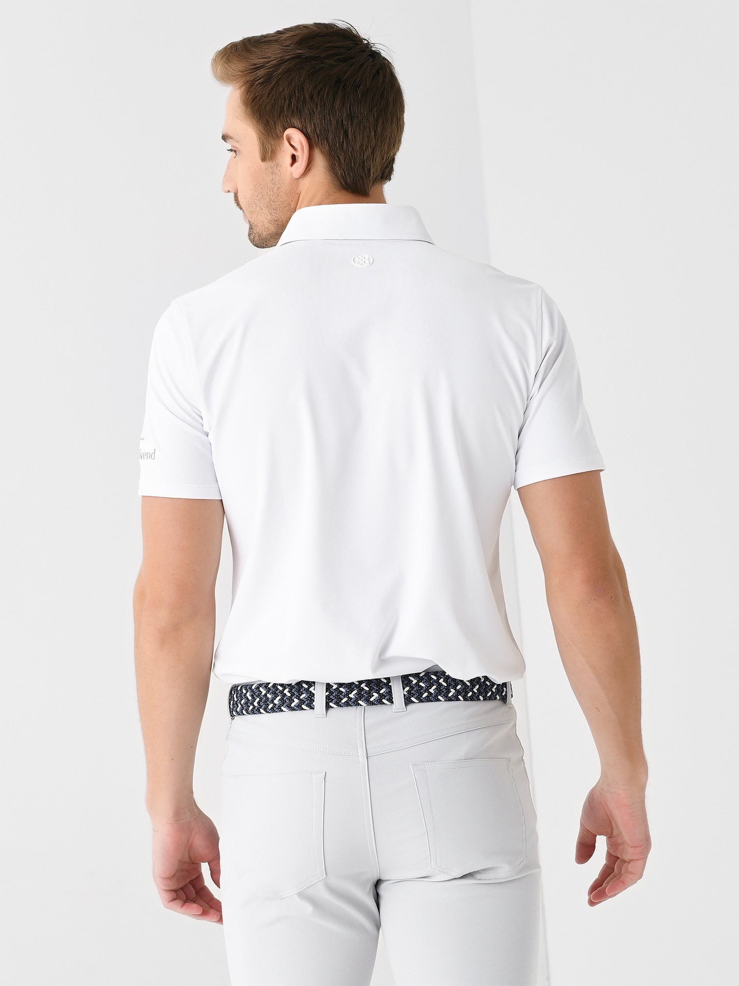 Ultra-breathable performance polo with anti-odor technology and a tailored silhouette with a custom embroidered sleeve.