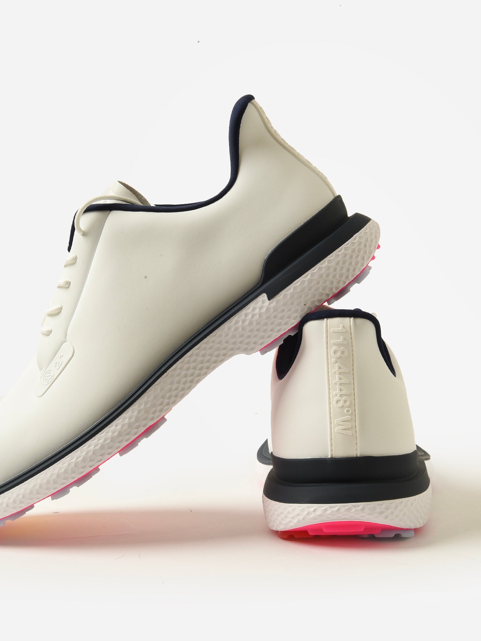 A waterproof golf shoe with an antimicrobial mesh lining and a fully locked-in sole with secondary traction points for unparalleled stability.