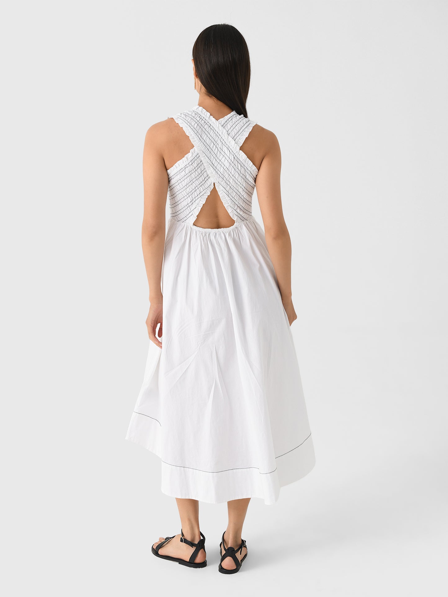GANNI Women's Washed Stretch Cotton Smocked Midi Dress