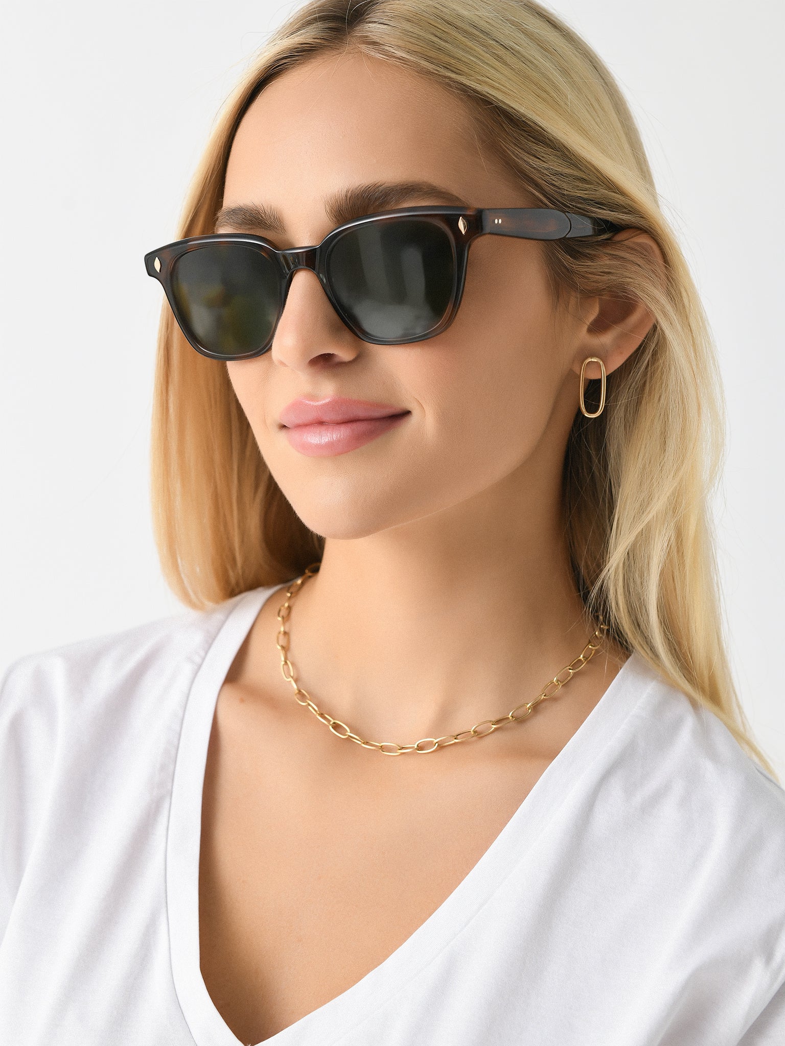 An updated pair of wayfarer sunglasses designed with contoured temples.