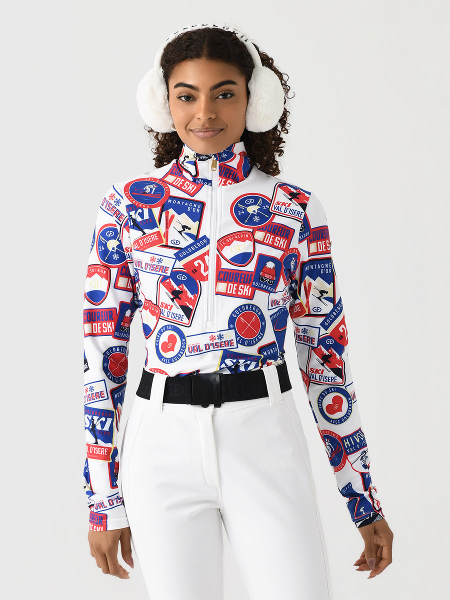 A comfortable base layer top made from breathable, anti-odor fabric and finished with a custom ski badge print.