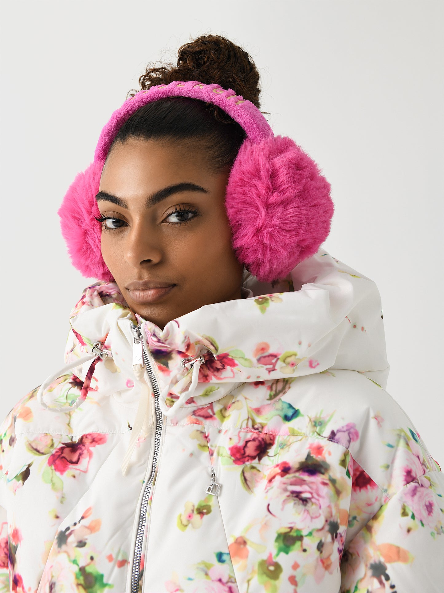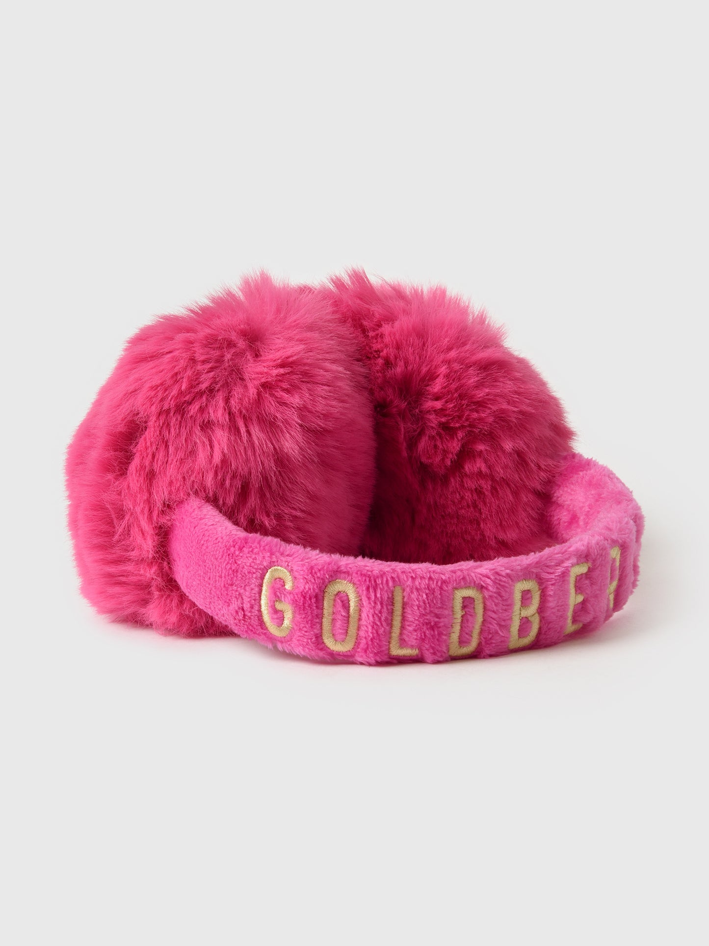 Fluffy faux fur earwarmers featuring Goldbergh embroidery and an adjustable fit.