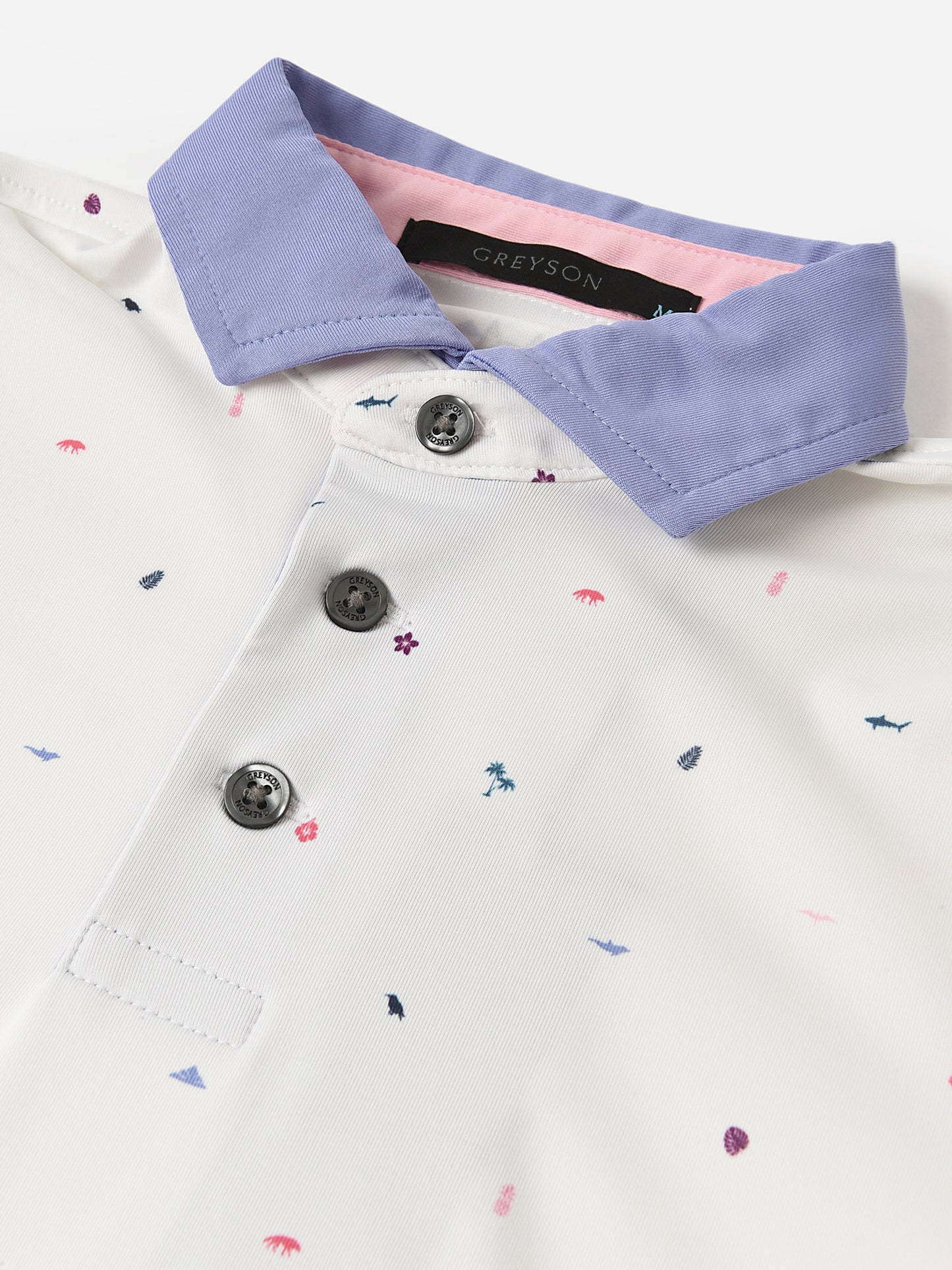 A lightweight polo constructed from breathable, quick-drying fabric featuring a tropical print inspired by the island of Lanai.